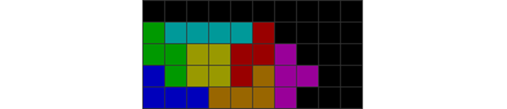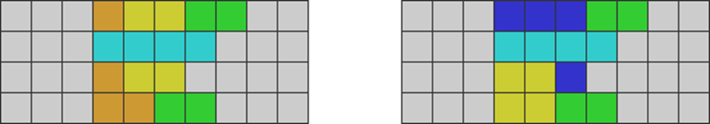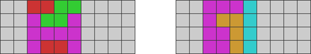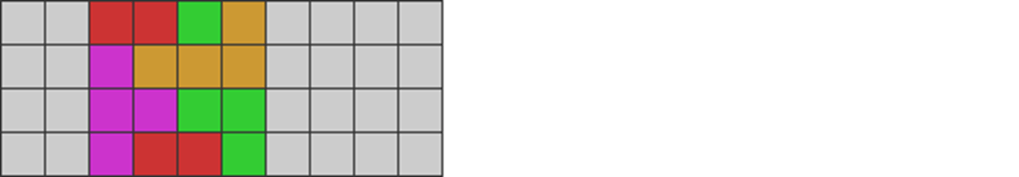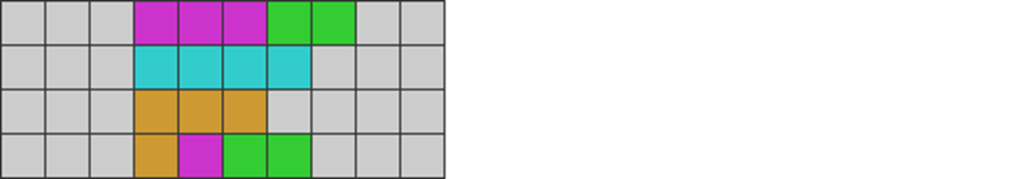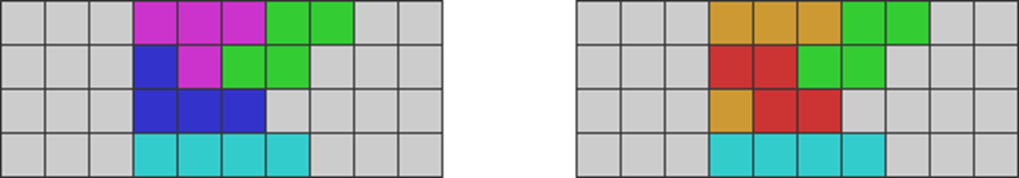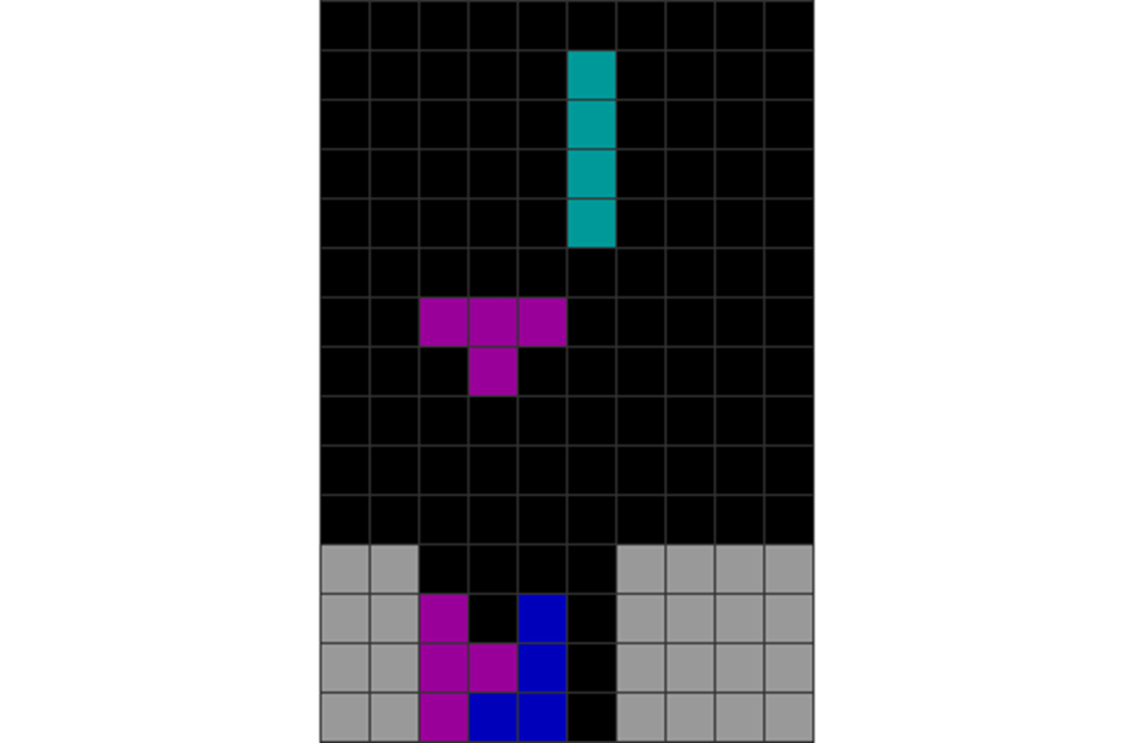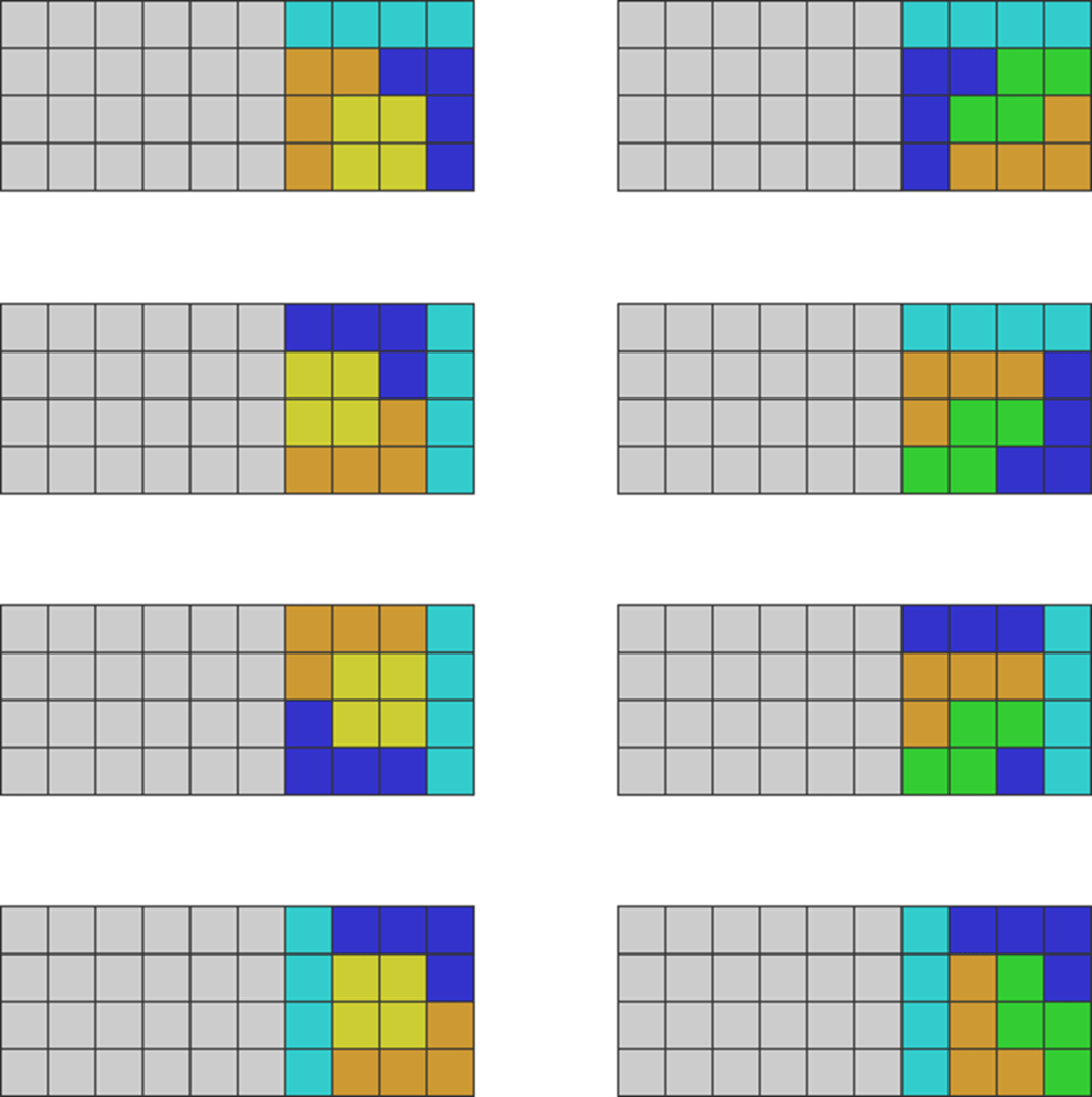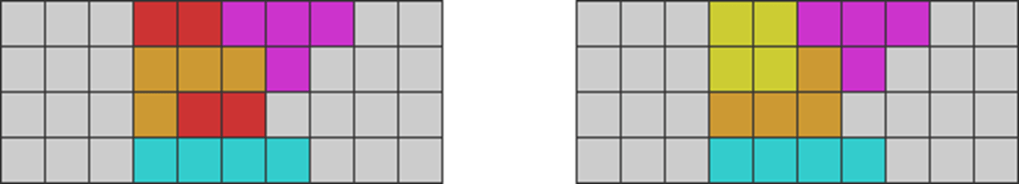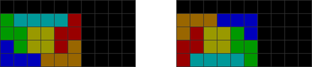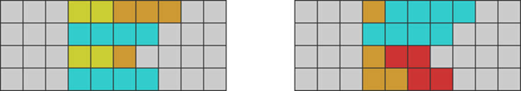 First, the number of L, J, and vertical T placements occupying the corners of a rectangular cavity must be even to create a perfect clear (minus rare exceptions, to be covered in the next book). Here’s an illustration: