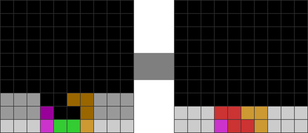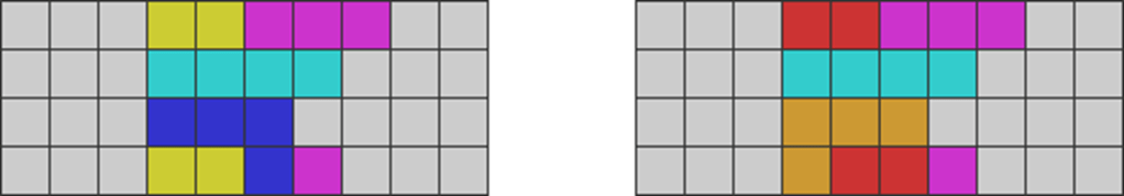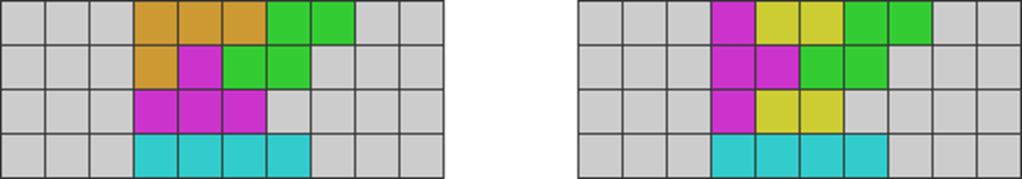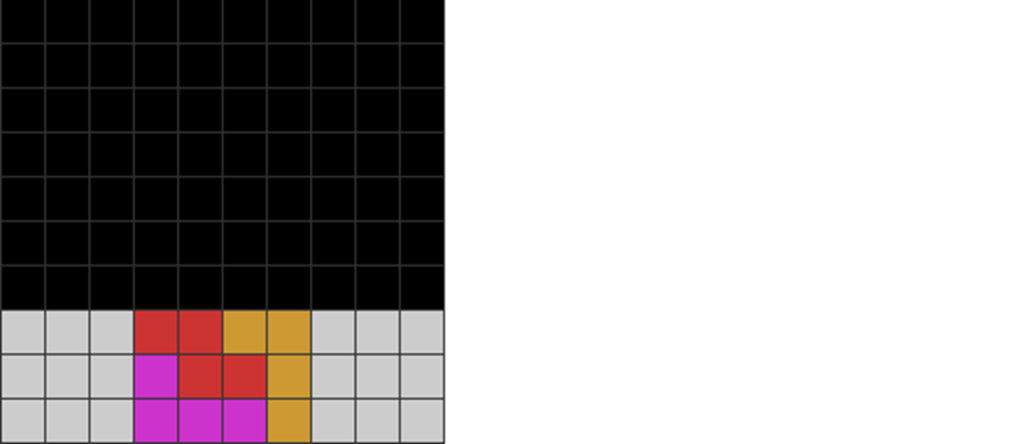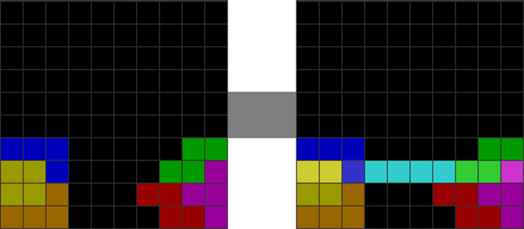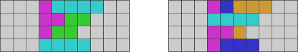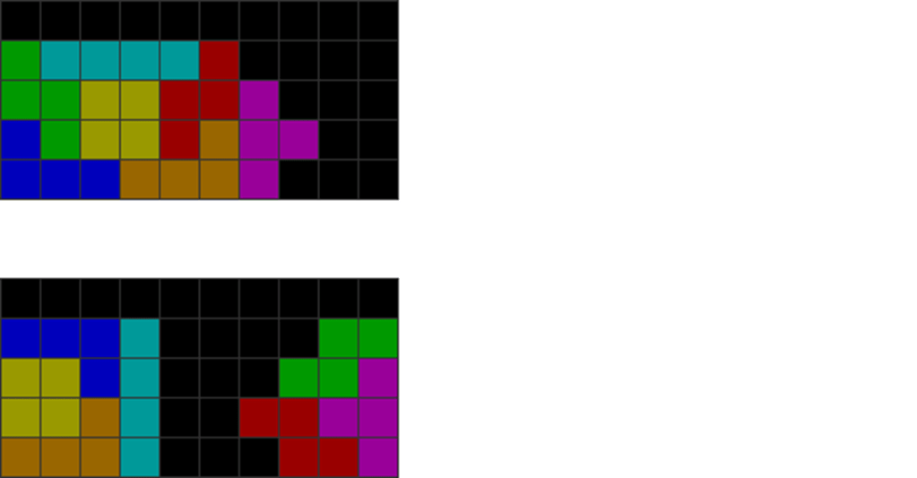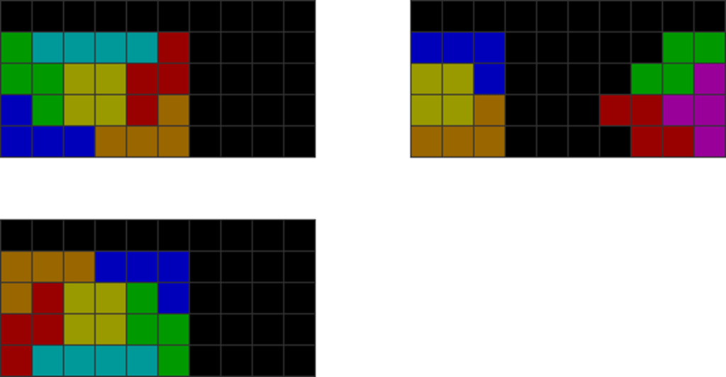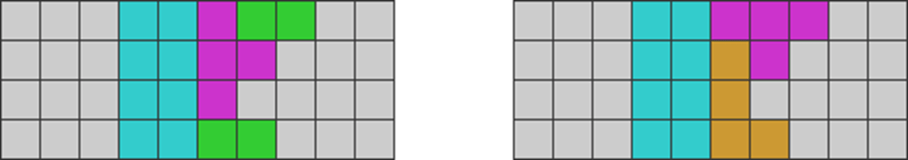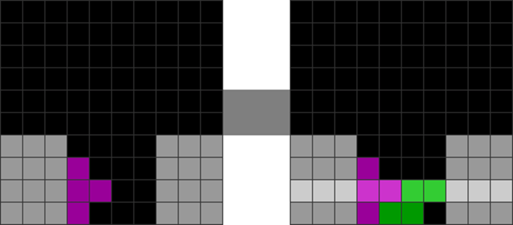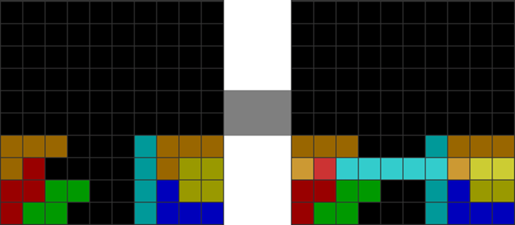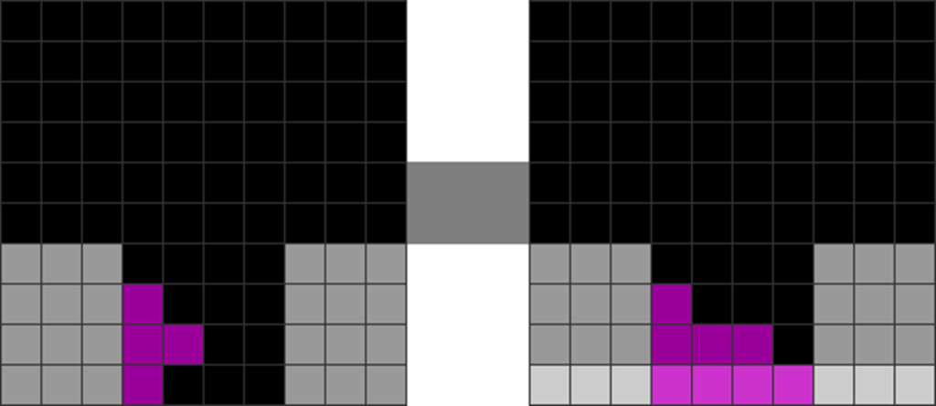 | Ideally, I recommend players hold the T piece as this maximizes the chances of a perfect clear. Make the two patterns above, which don’t have the T placed yet. |