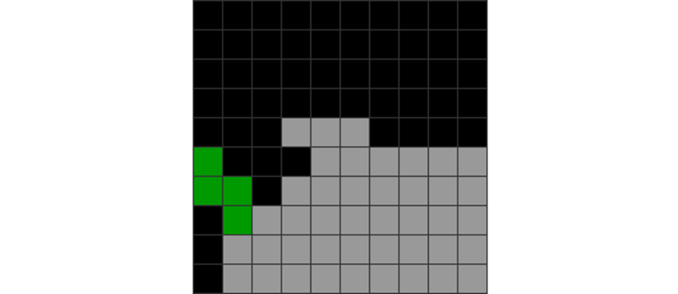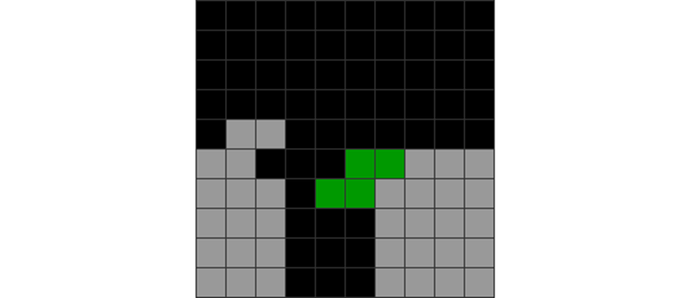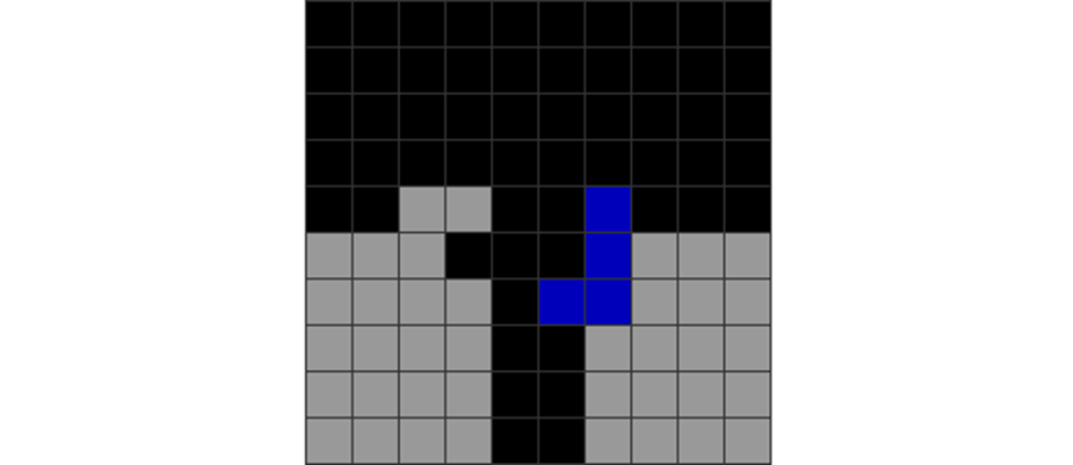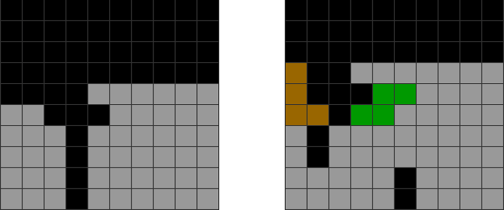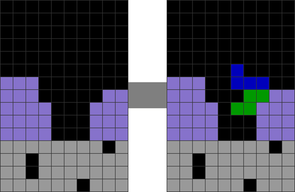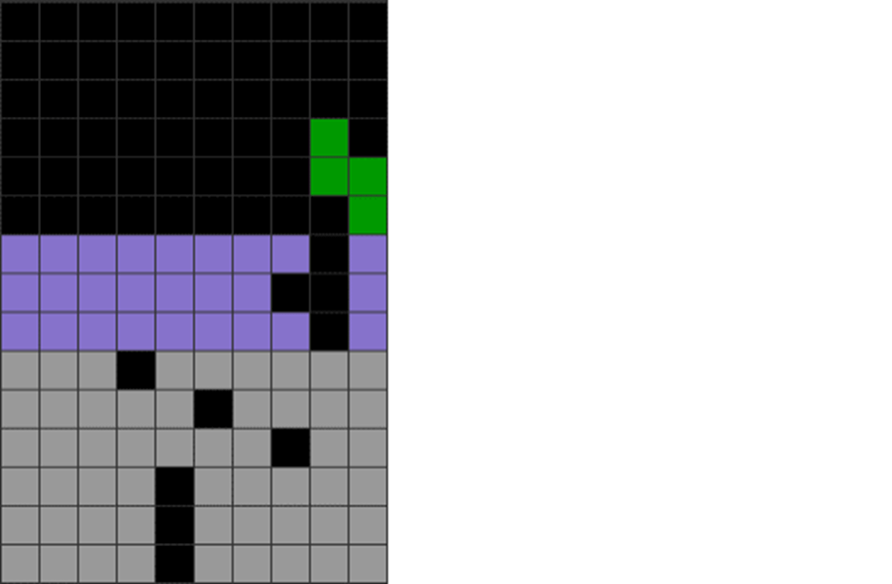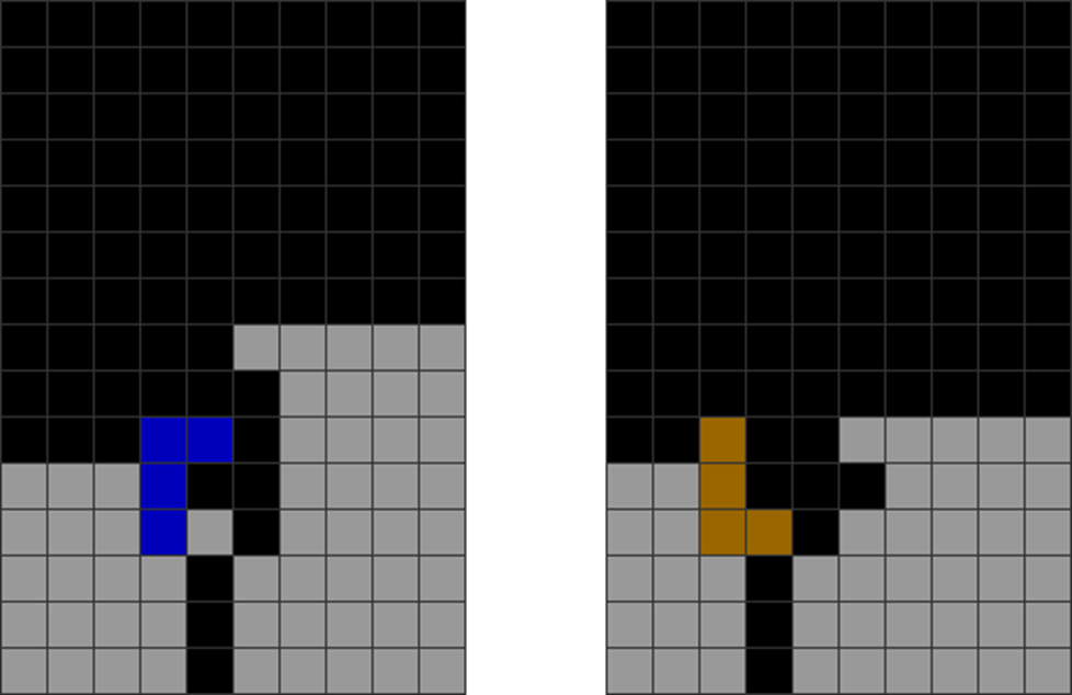 | The player spots a 3-wide gap and then places a horizontal S piece. He then builds the overhang, completing the STMB Cave. |