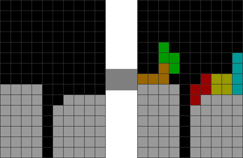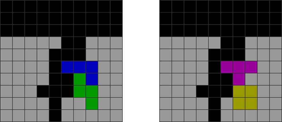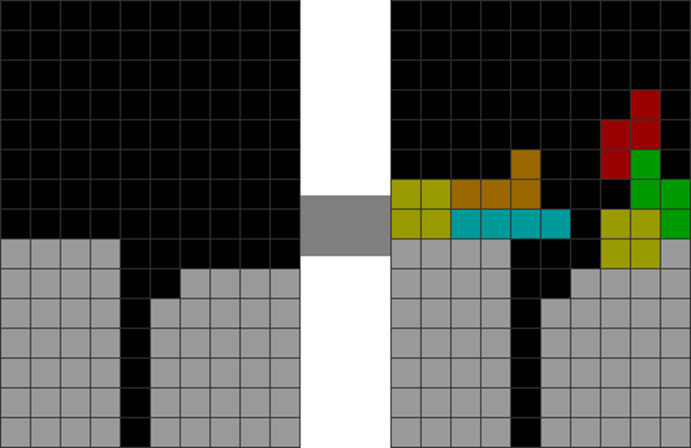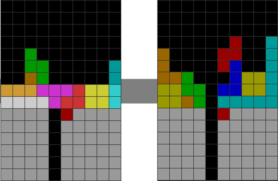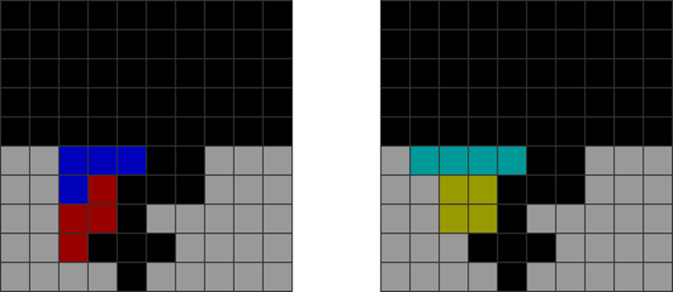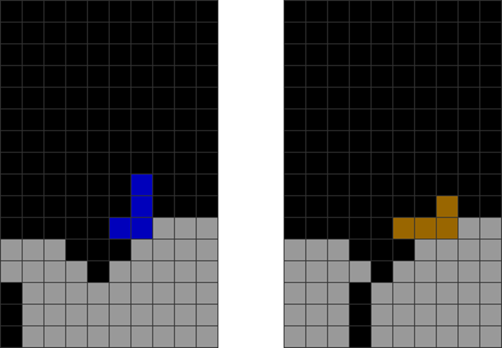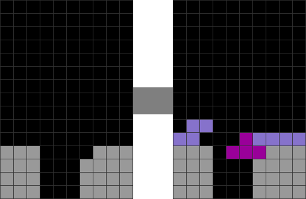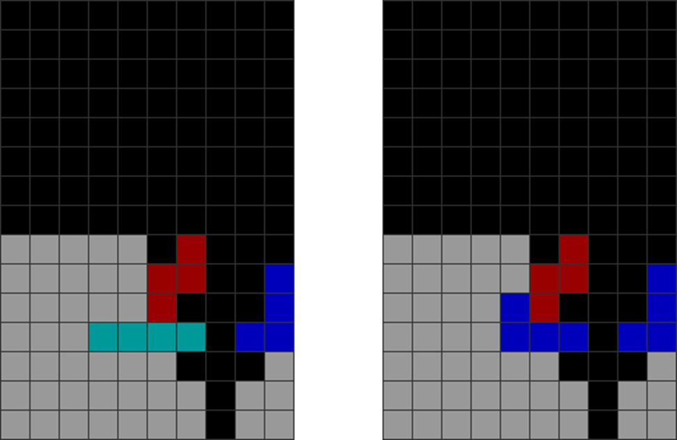 | The first T-spin double finishes. | This leads to a second T-spin double. |