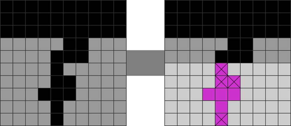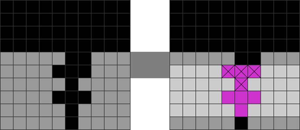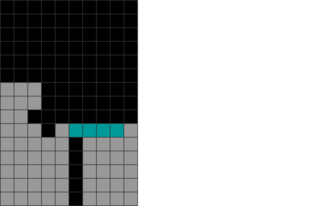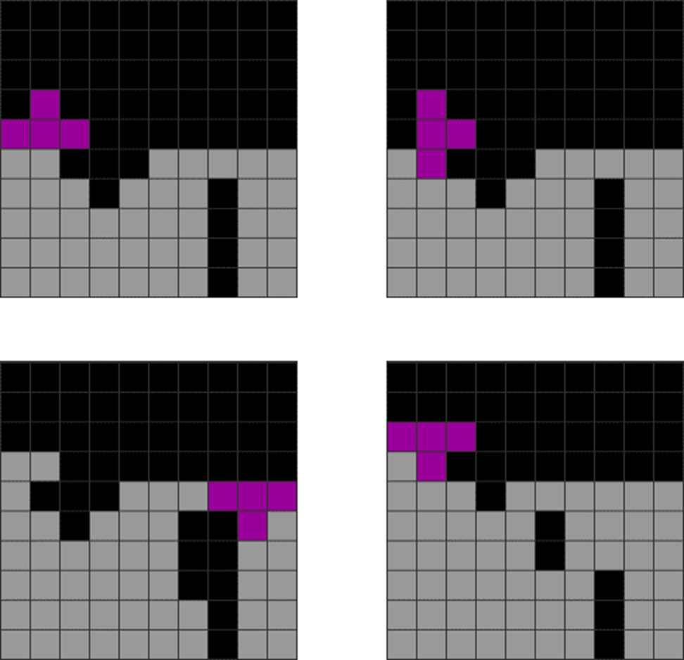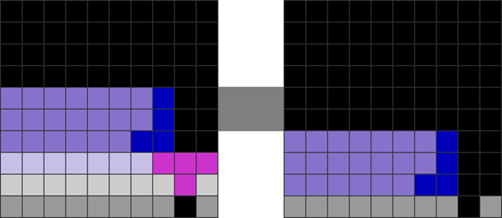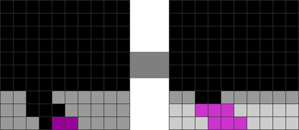 As shown in the first picture above, the lavender area should be one complete row because a T-spin single makes a single line clear. You can generalize this for a T-spin double and triple, which need two and three entire rows, respectively.