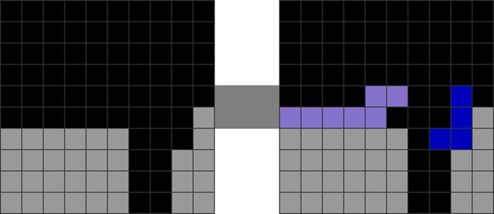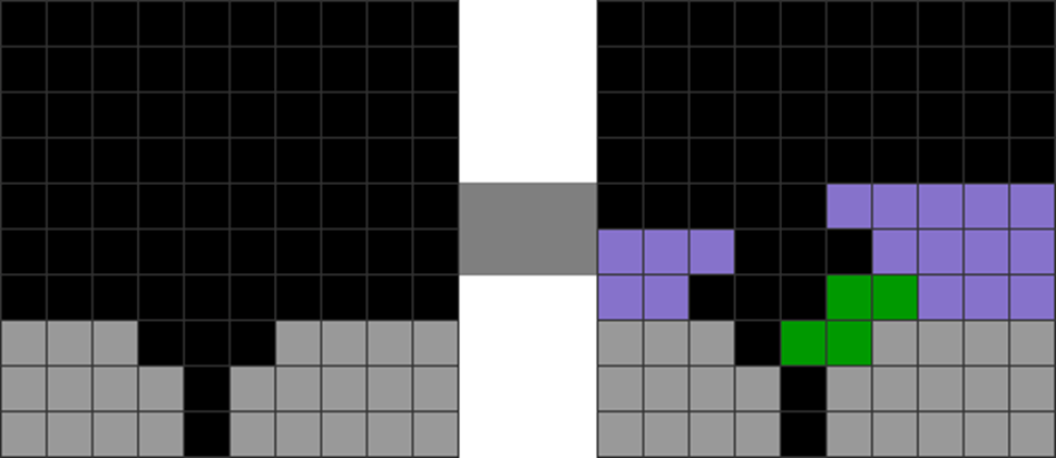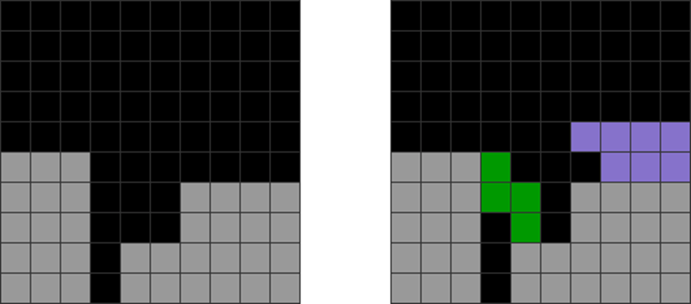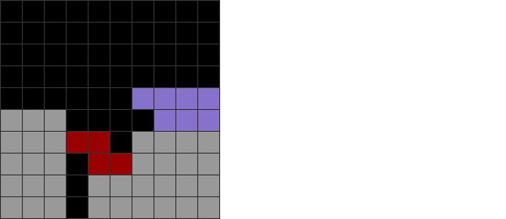 | The starting field. | It is common to put the S over the cavity like this, then fill the lavender blocks to make a Cut-copy. |