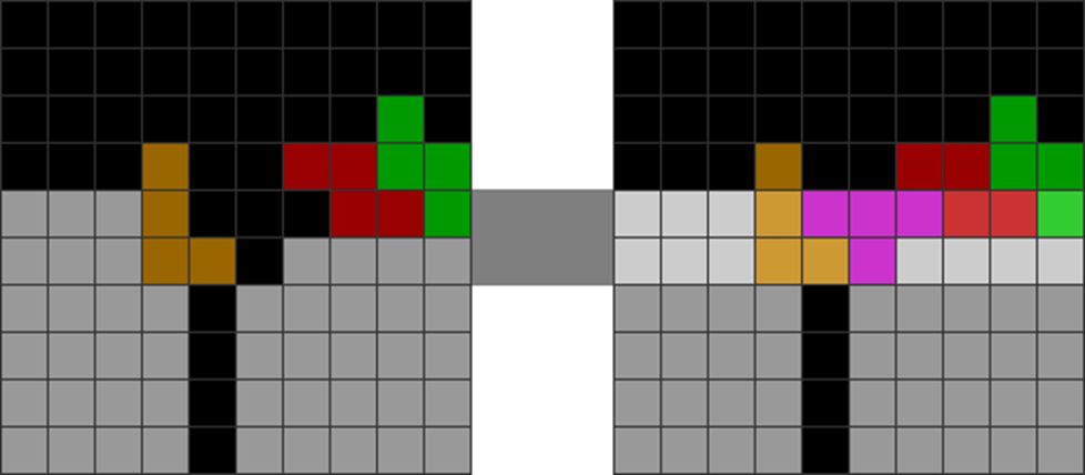 | Fractal involves creating the above pattern. Note how some pieces combine well with others to make clean Fractals. |
