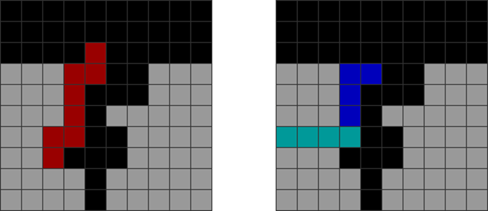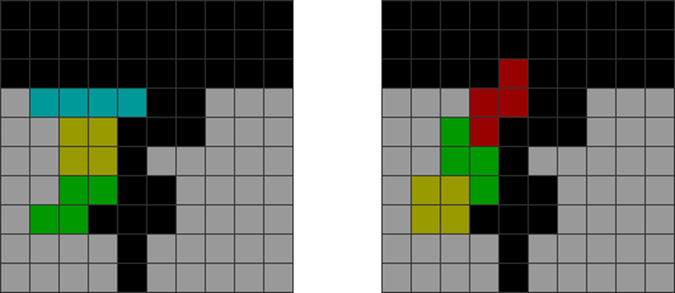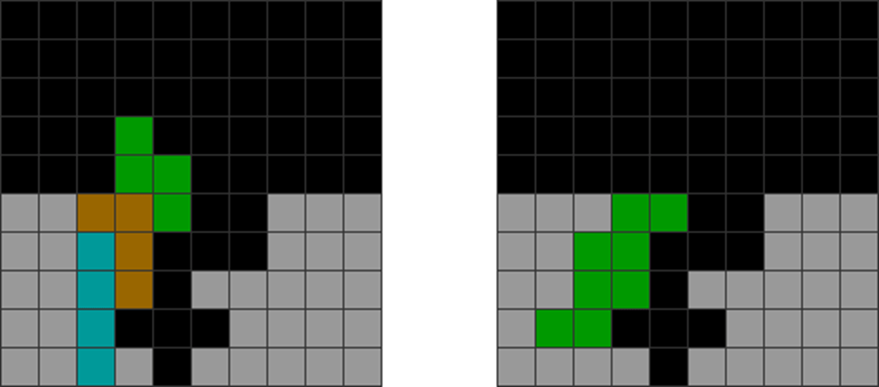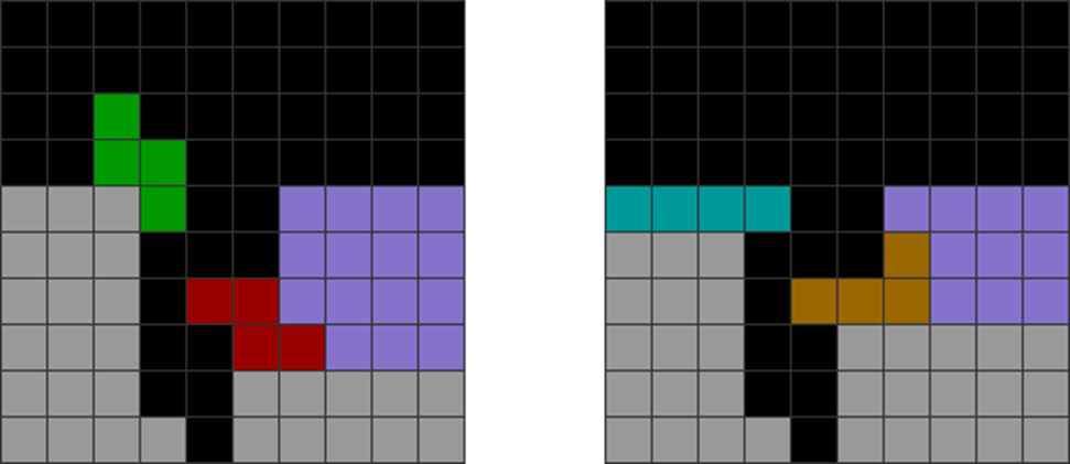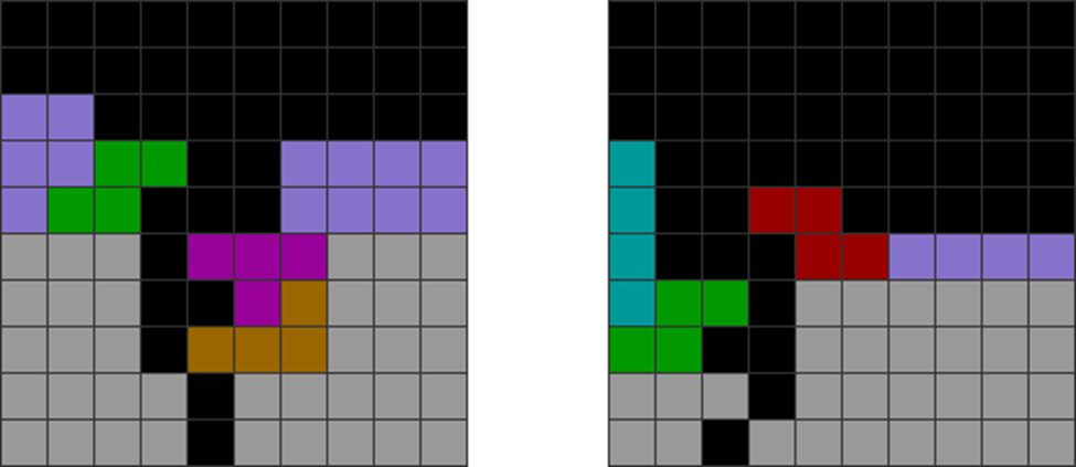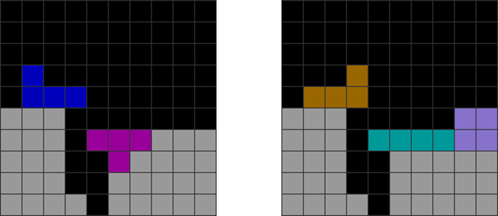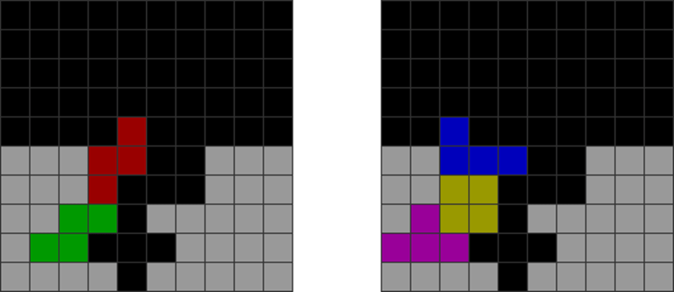 | Starting field. | The player places the overhang (J piece) on the wrong side. |