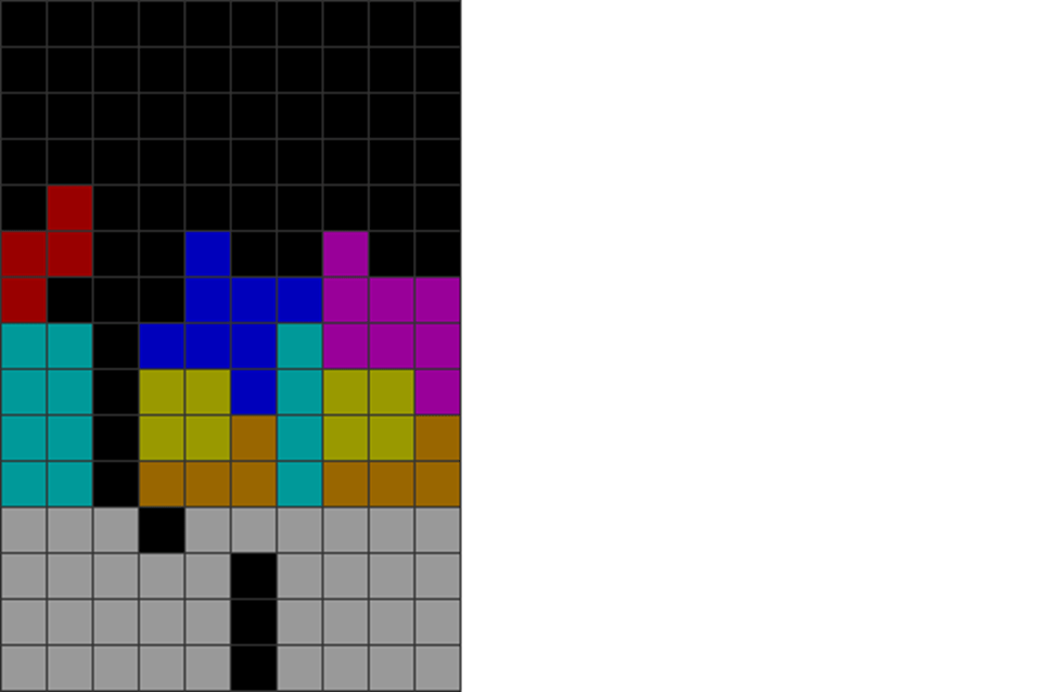 - Gray: Garbage blocks. However, I sometimes use them to describe miscellaneous shapes if I don’t show specifically how some parts of a field are made from the 7 minos.