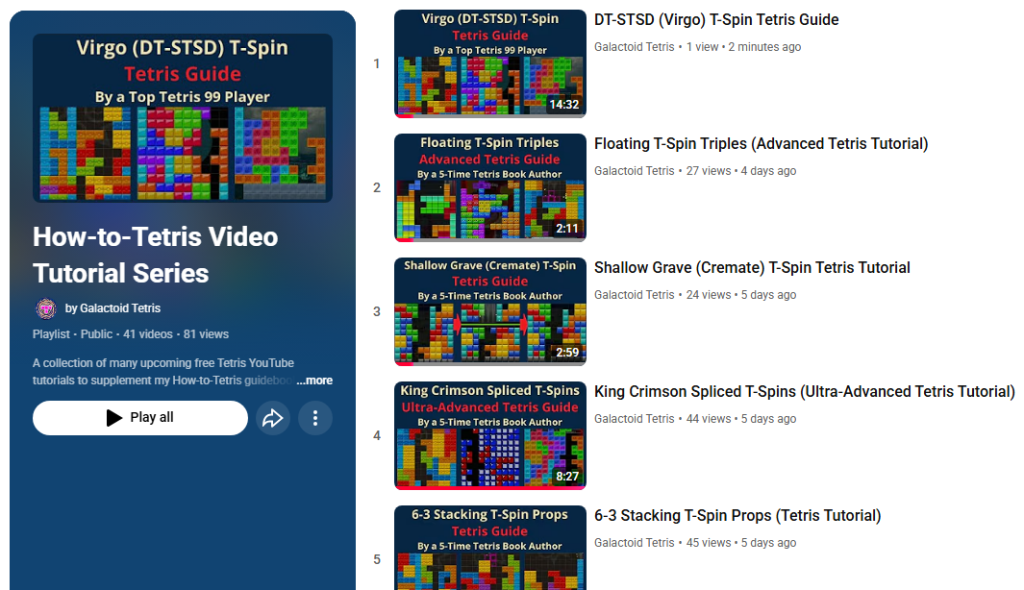 I will be making many YouTube Tetris tutorial videos to supplement my Tetris guidebooks.