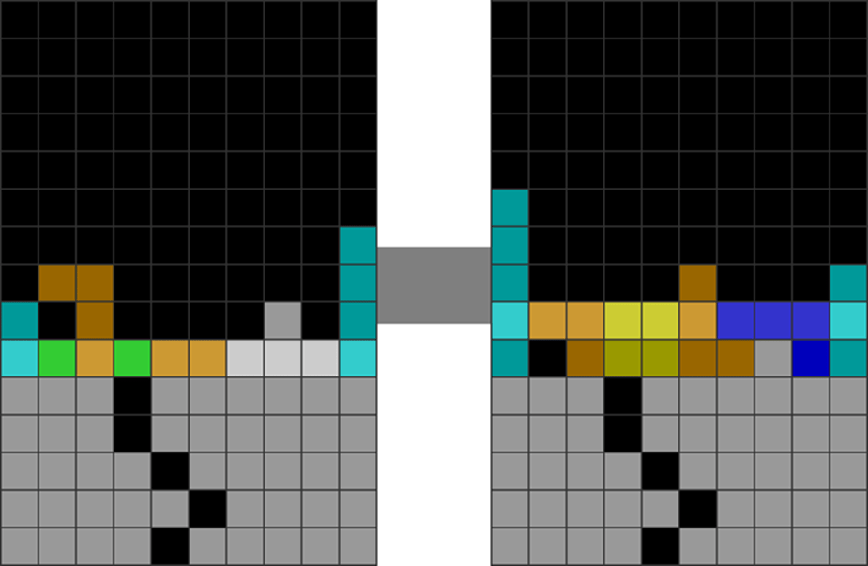 | Parity imbalances can cause unclean stacking over holes, preventing line clears without clearing the lines above the holes. |