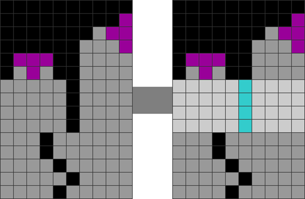 The lavender and gray blocks represent the alternation of even and odd blocks. While not seen in the game, we use this checkerboard pattern to visualize the contours of the stack in some diagrams.