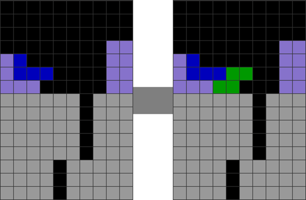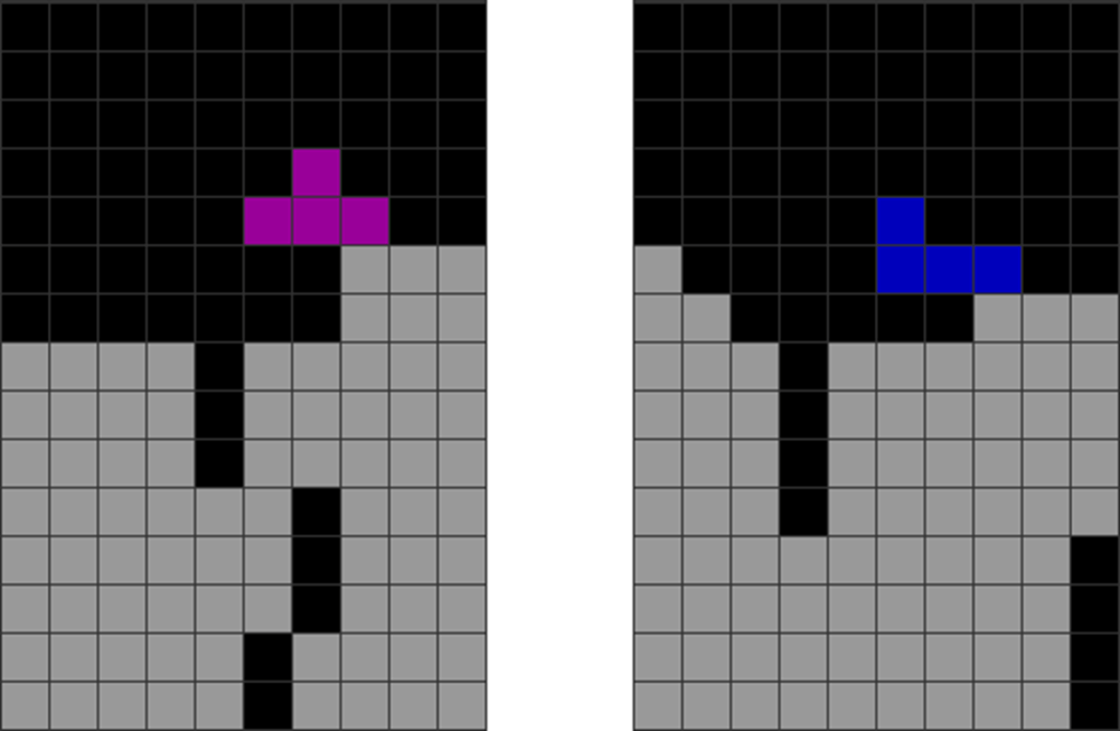 | Misdrops that leave a cavity beneath the T and J pieces, respectively, in A and B. |