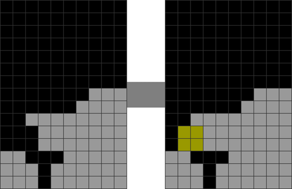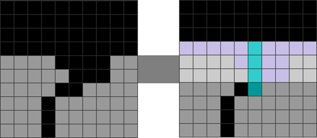 Sometimes, your field may seem very cluttered. However, as my downstacking chapter has shown, you can downstack through the shape caused by the misdrop by joining pieces like this: