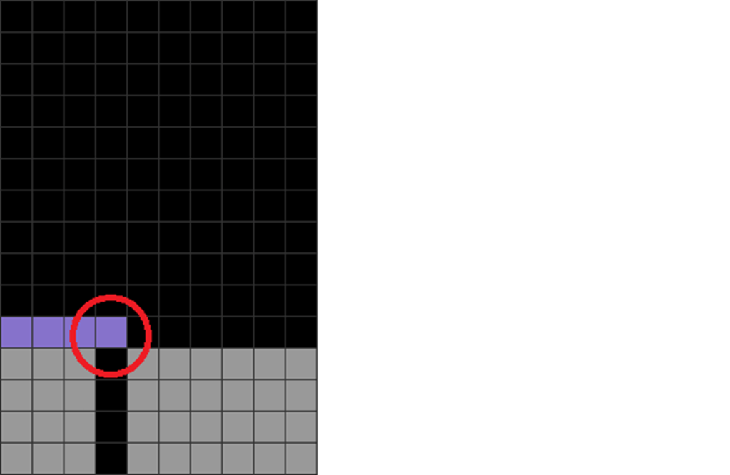 | After the Tetris line clear, the red-circled block will obstruct the next hole. The Tetris is hence dirty. |