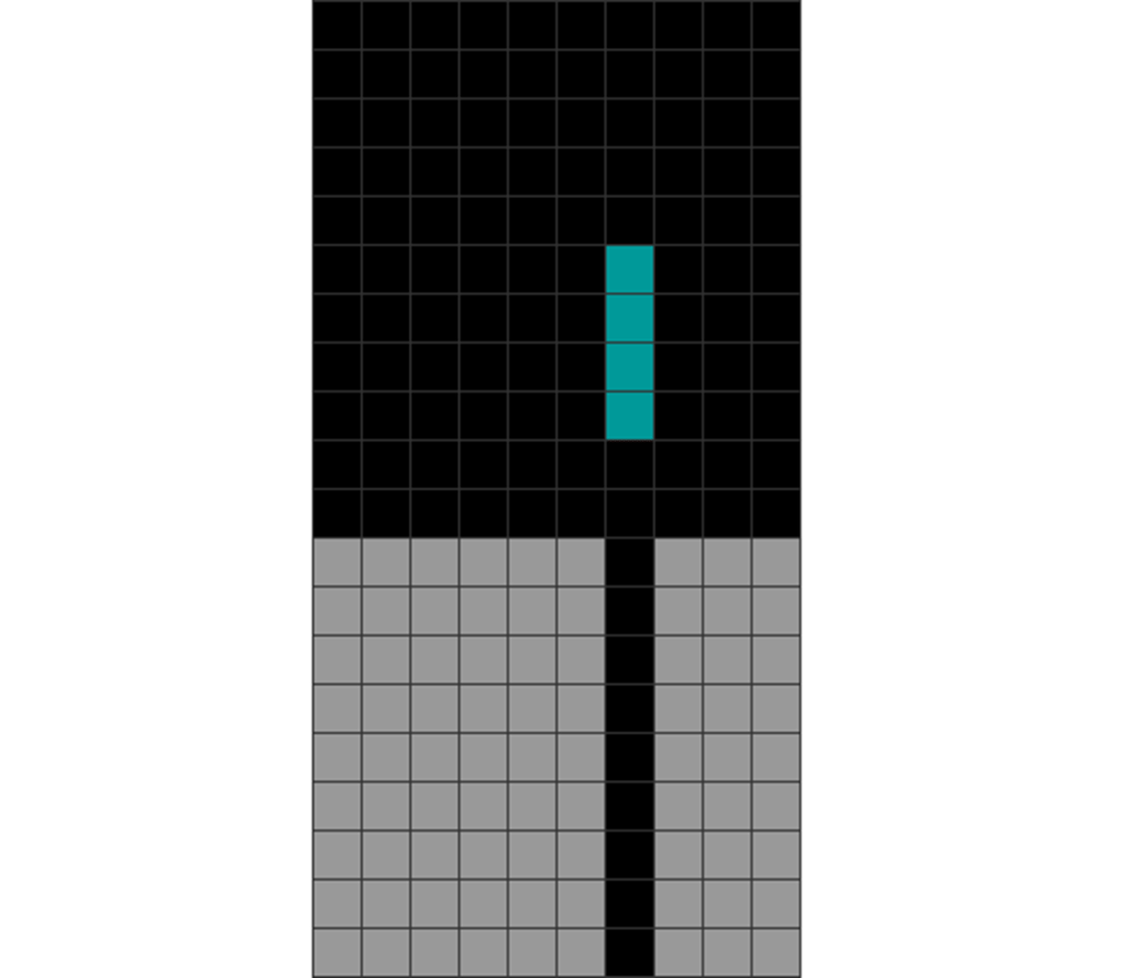 | The empty hole is in the 10th column for the Tetris. The other 9 columns are filled. |