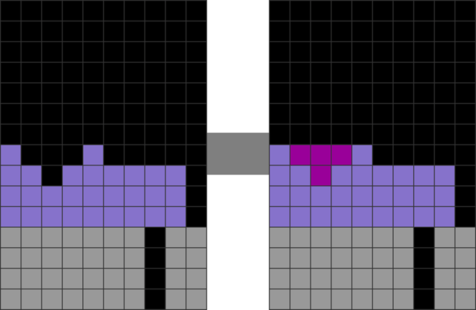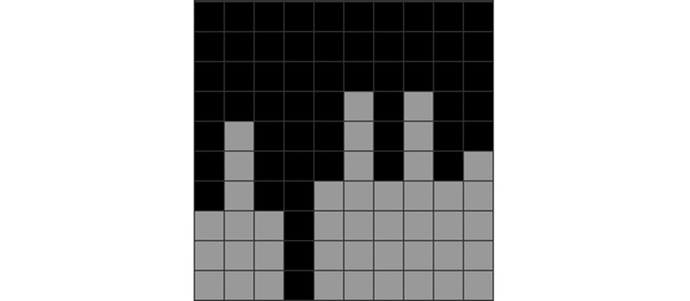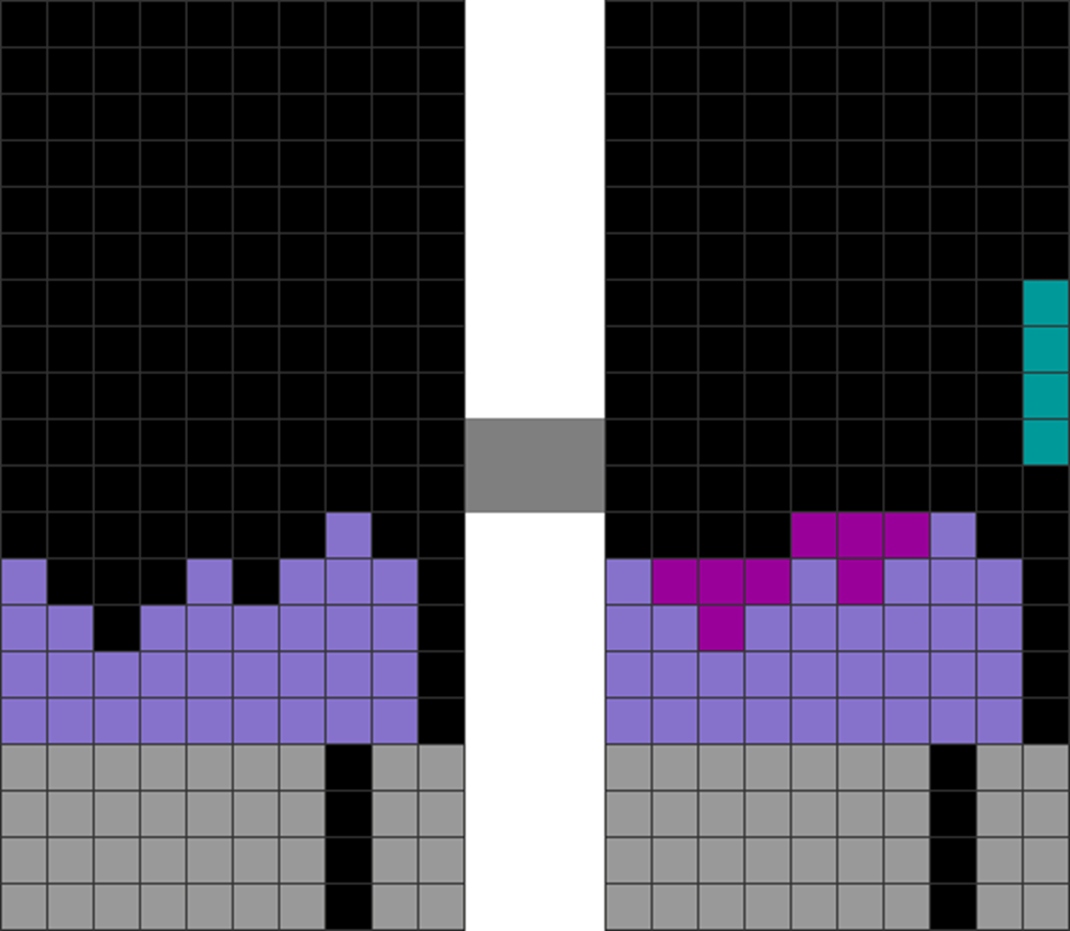| This field is jagged and divided. It has many bumpy areas. | This causes S, Z, and I to be placed vertically because it’s the only way to stack. This leads to more vertically-placed S, Z, and I pieces over them. One part of the stack is overstacked, covering future garbage holes. |