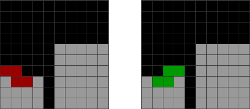 | This stack has poor stacking as many divisions and jagged areas exist. | Because of the jaggedness, there is no room to flatly place L, J, or O. They cover holes. |