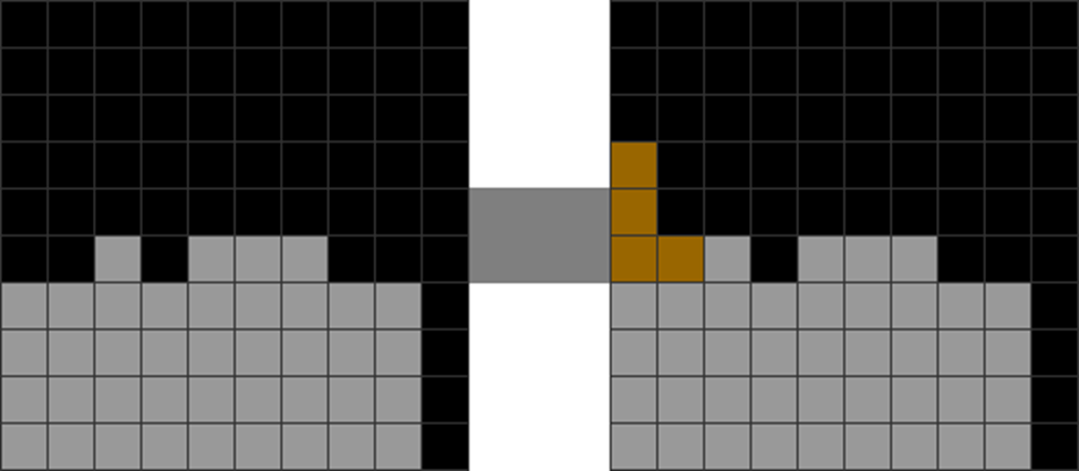 | These patterns lead to only placeable vertical S, Z, and I pieces over the jagged areas. |