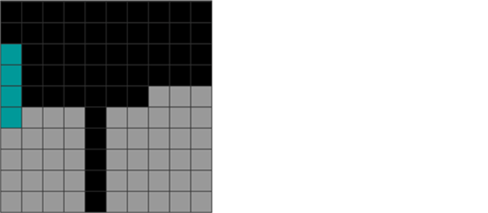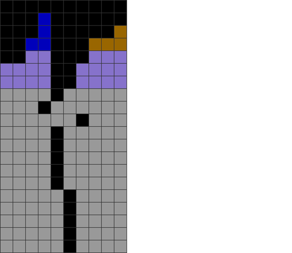 | The L and J pieces are placed at the corner, leading to I and more L and J dependencies in columns 1 and 10. |