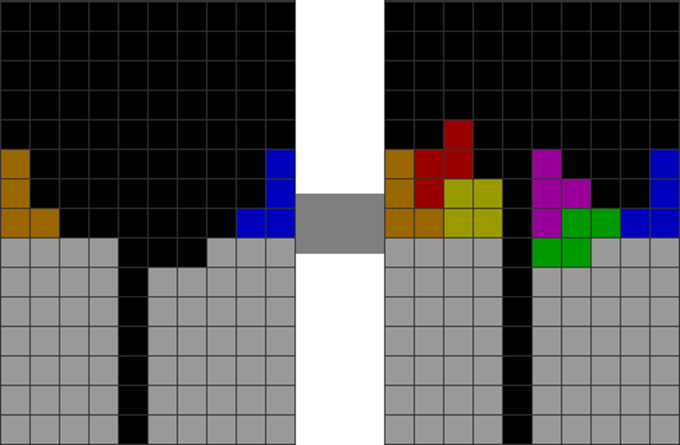 | The player resolves jaggedness quickly by placing two Ts in the two jagged areas. He then cleans up with a Tetris. |