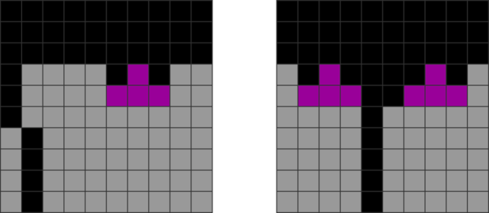 | In step 1, the player puts the L and J pieces at the corners, creating a taper that leads into a middle well. In step 2,the player has more stacking opportunities that don’t lead to a dead-end. |