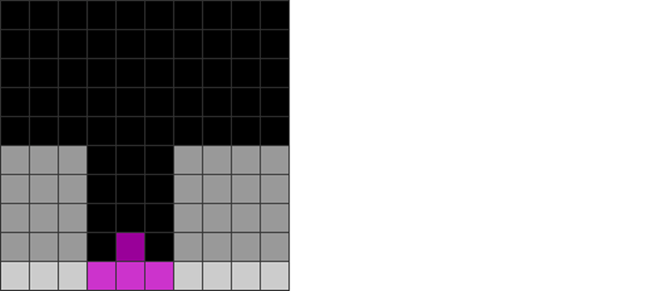 | Putting the J and L this way enables many more pieces to be placed. The O, L, and J pieces can be placed in the left cavity; the S, Z, T, I, O, L, and J can be placed in the right area. |