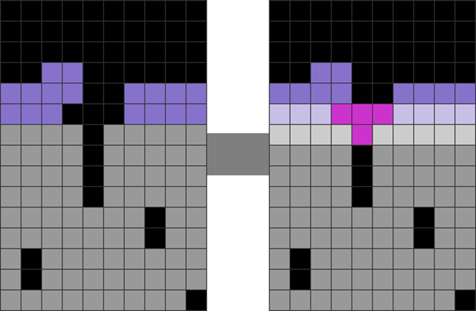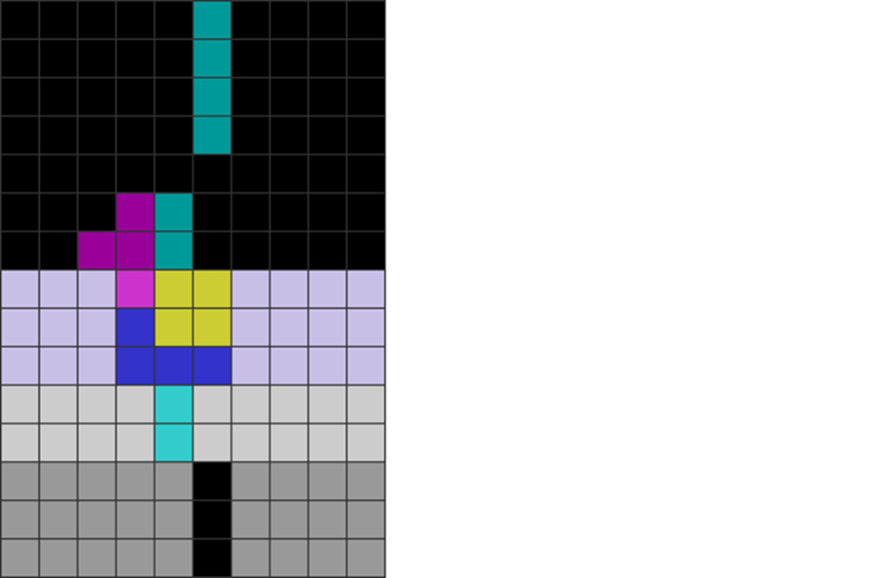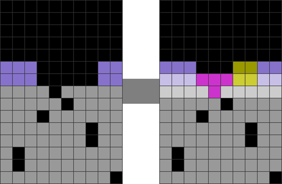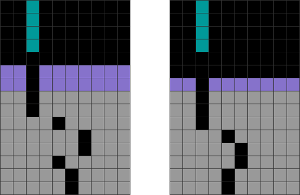 In the above diagram, the player must be prepared to skim with non-I pieces to wean off I dependencies in Tetris 99 because of the extremely clean garbage.