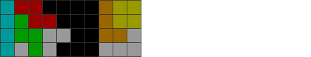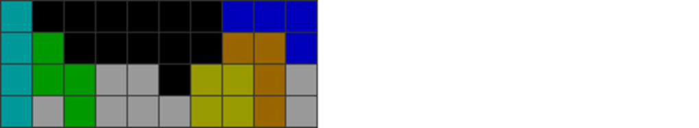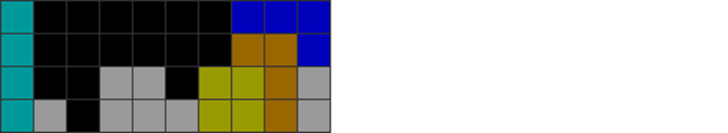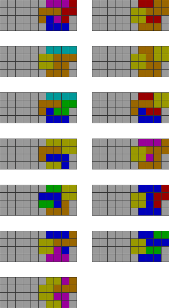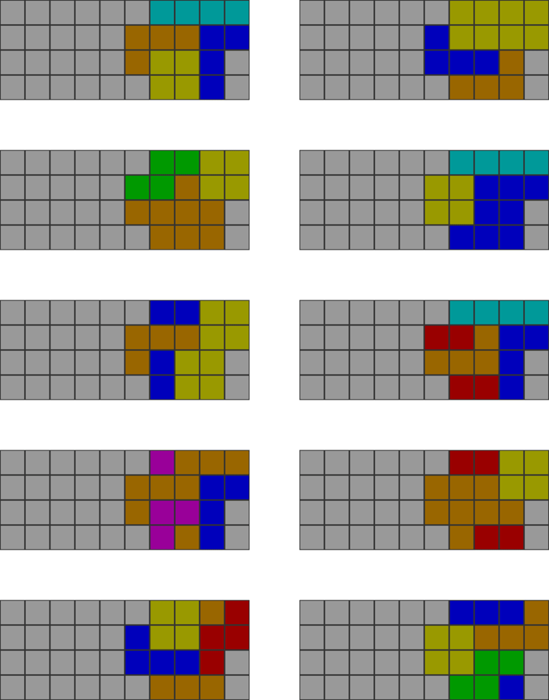 The above is the solution set if you place the I and S pieces in the left columns. If you put only I, you have this: