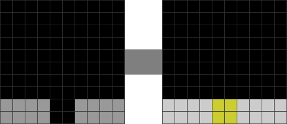 | Each block in this 10×20 field can be empty or filled. Here, the black blocks typically mean they are empty. |