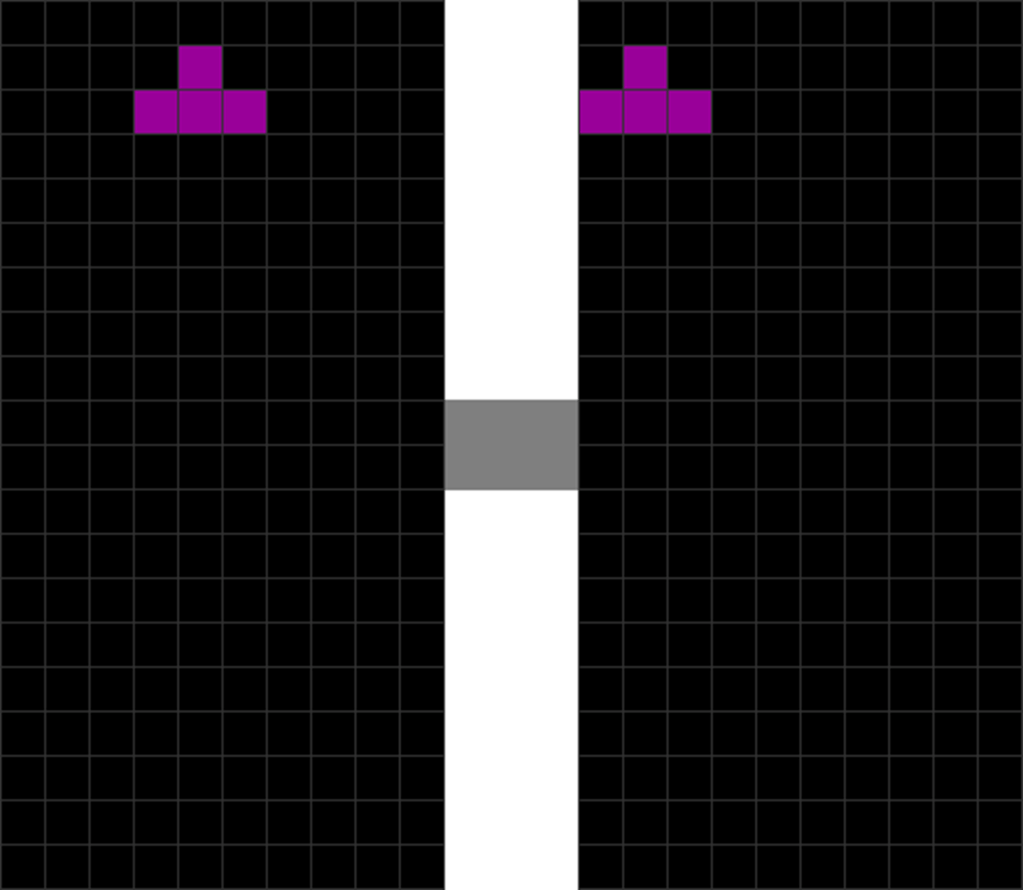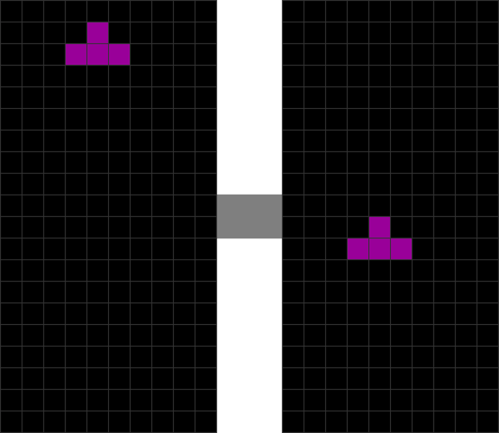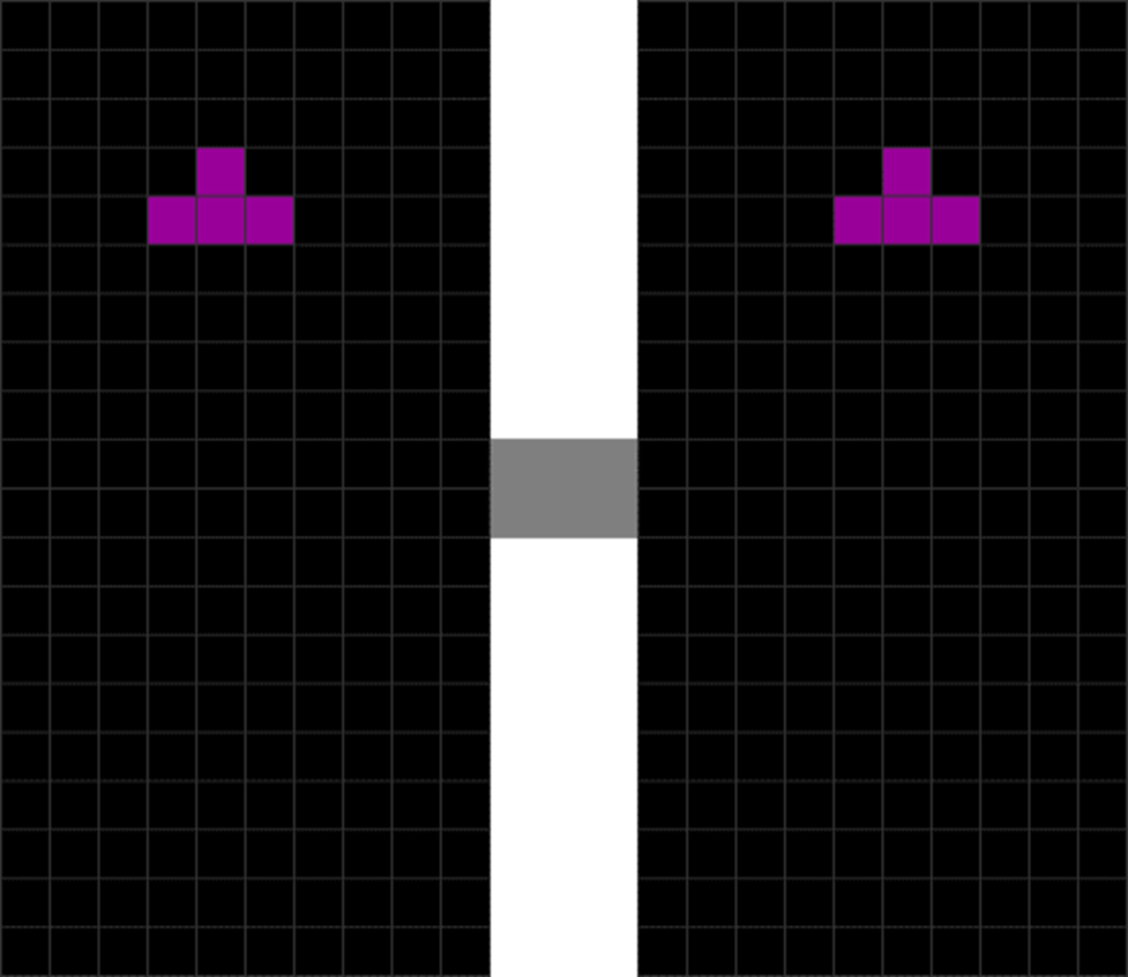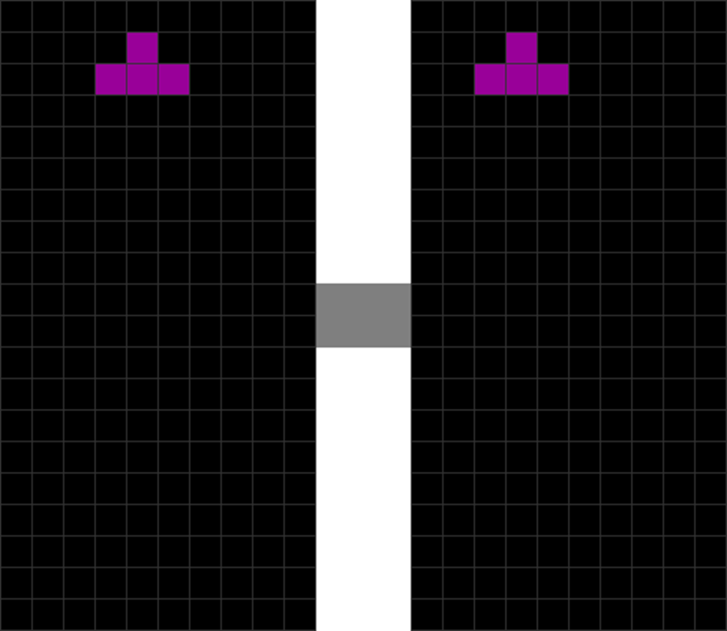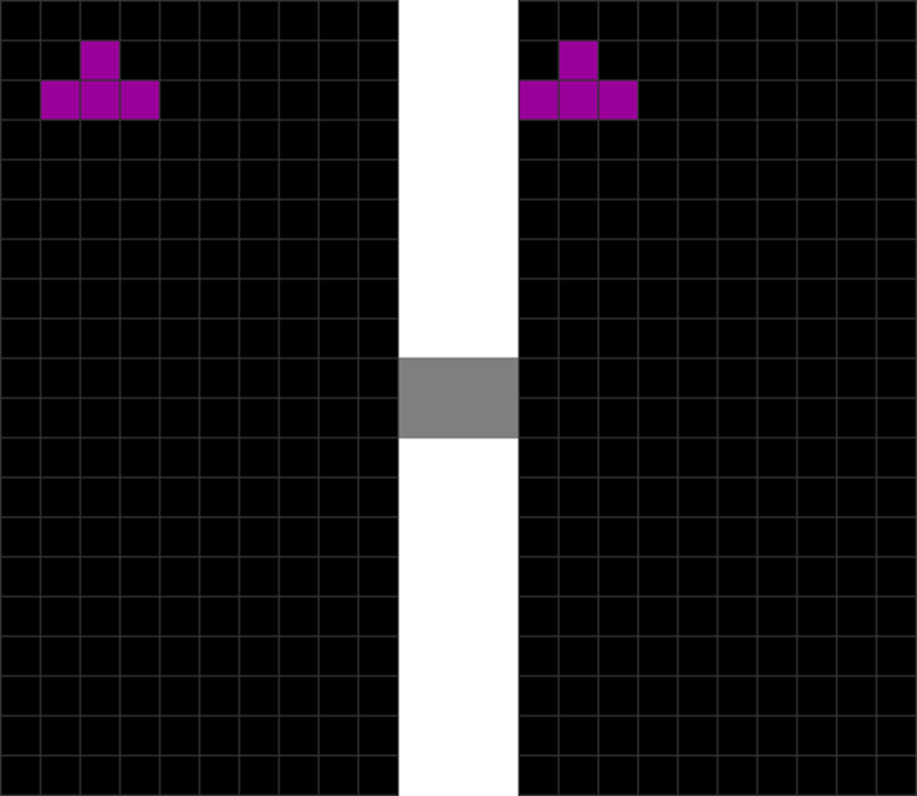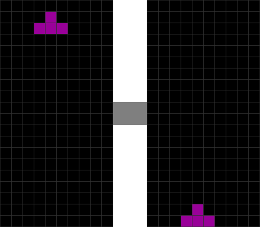 | The T piece spawns. | The player presses “move left” once. |