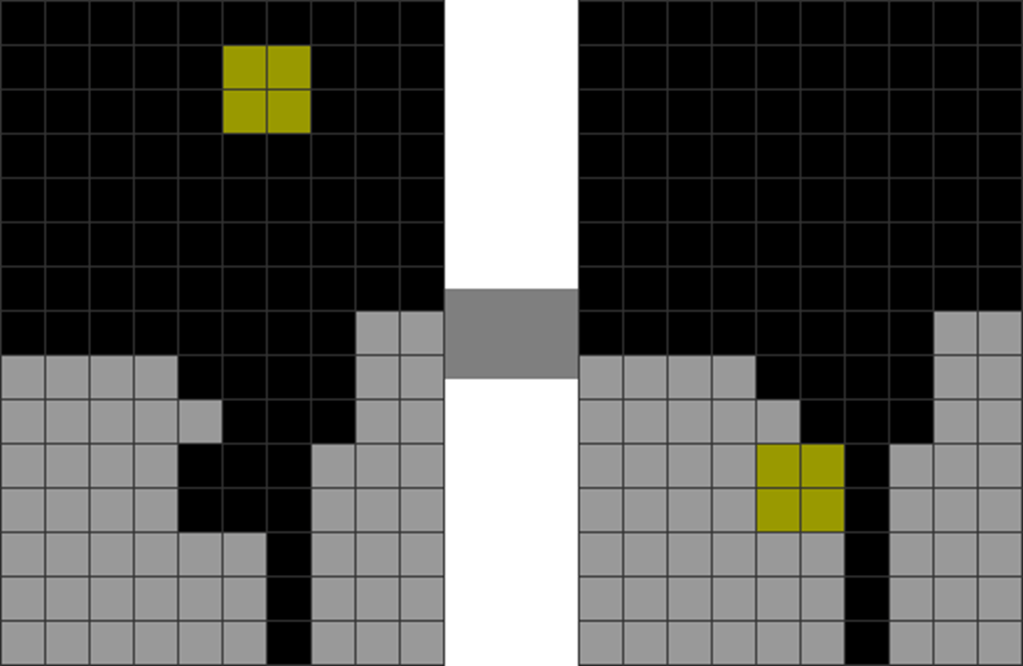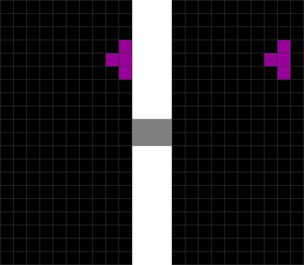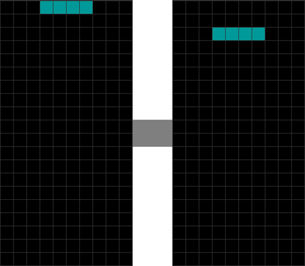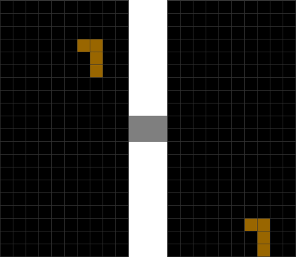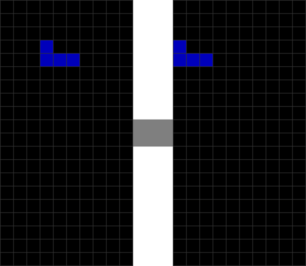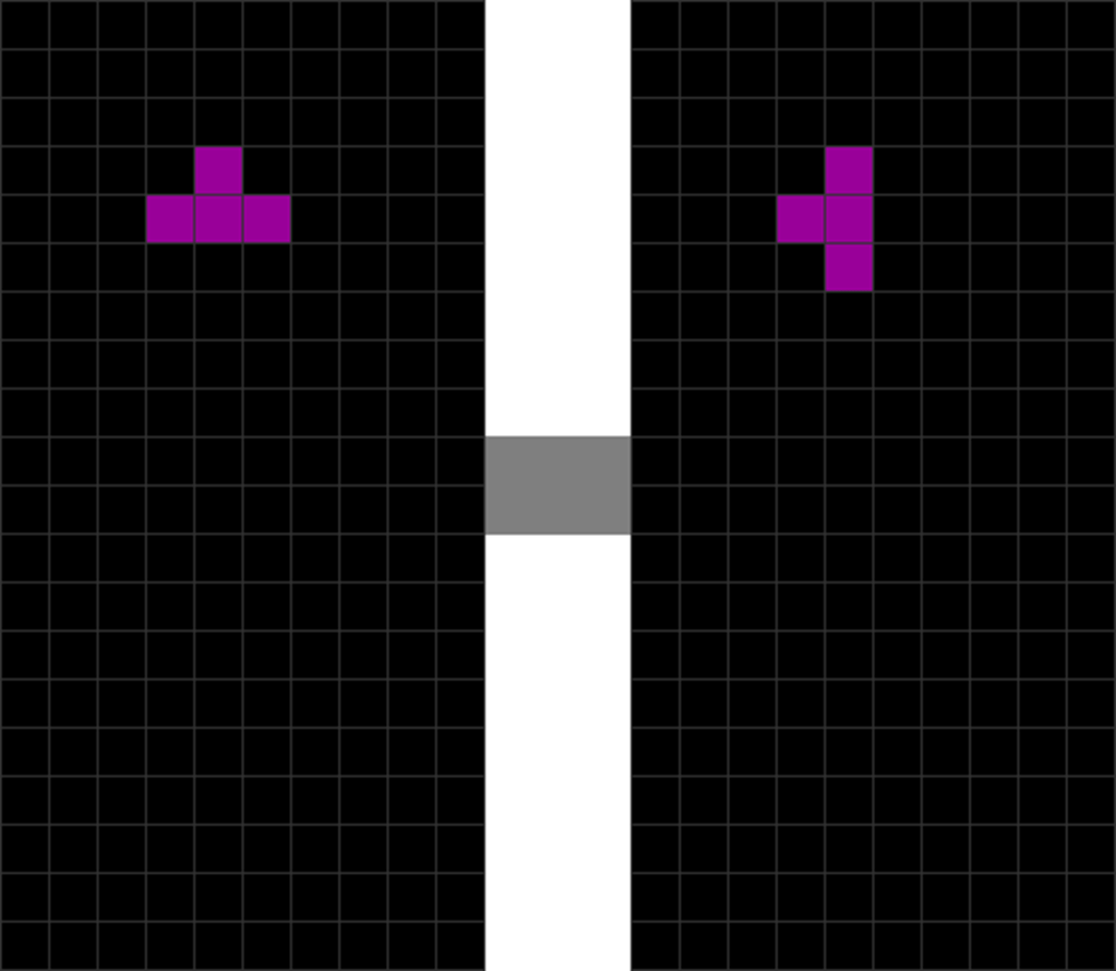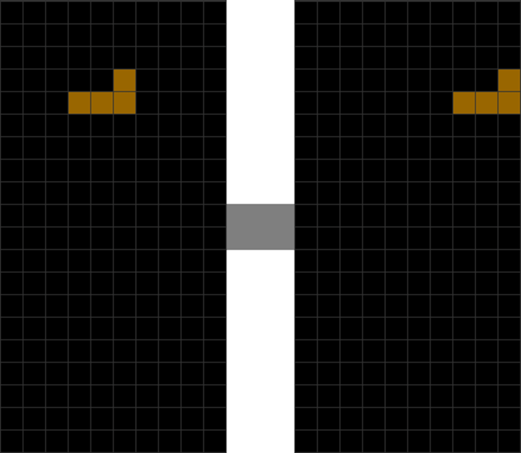 | The T piece spawns. | The player presses “move left” once. |
