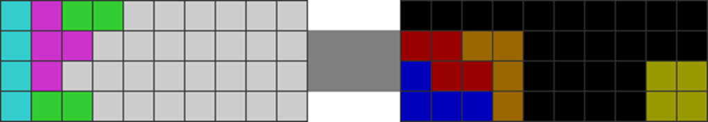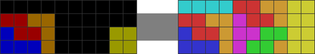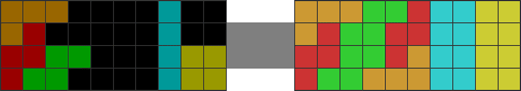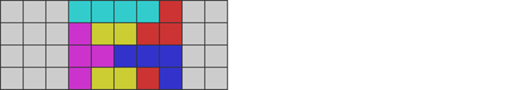 | At the start of an empty 4th PC bag, you place the last remaining 5 pieces of the 7-bag-randomized bag. | Then, you use the next 7-bag-randomized bag to solve the remaining area. |