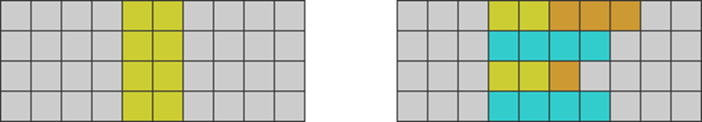 | A T is placed vertically at the corner. | Another J is placed, touching the corner. |