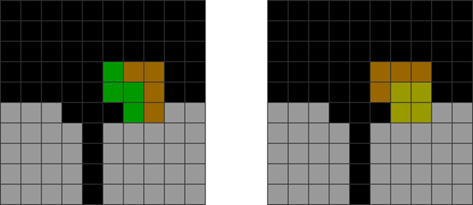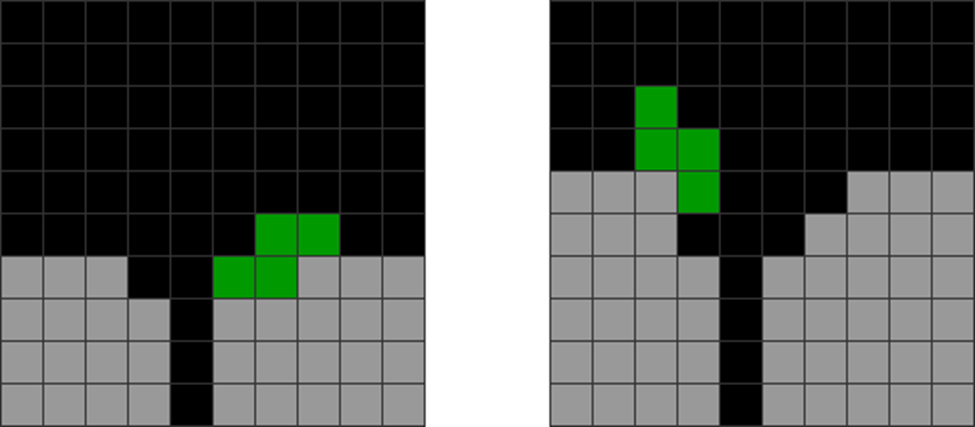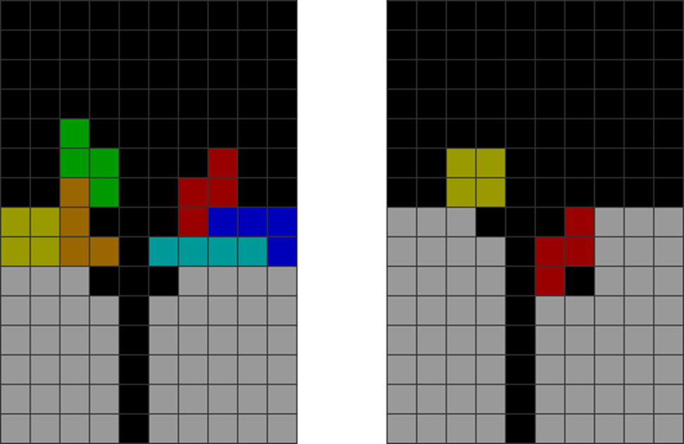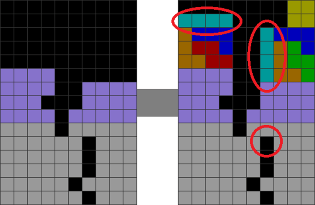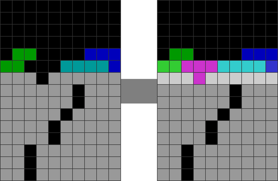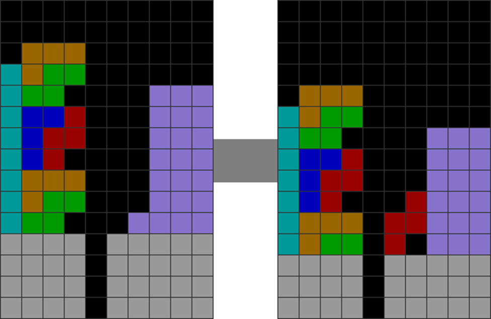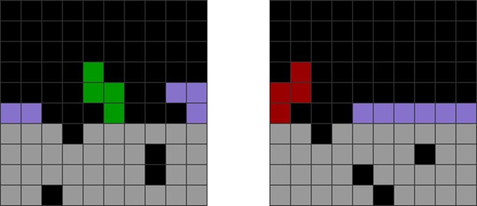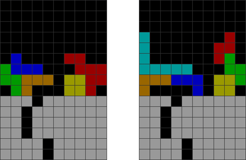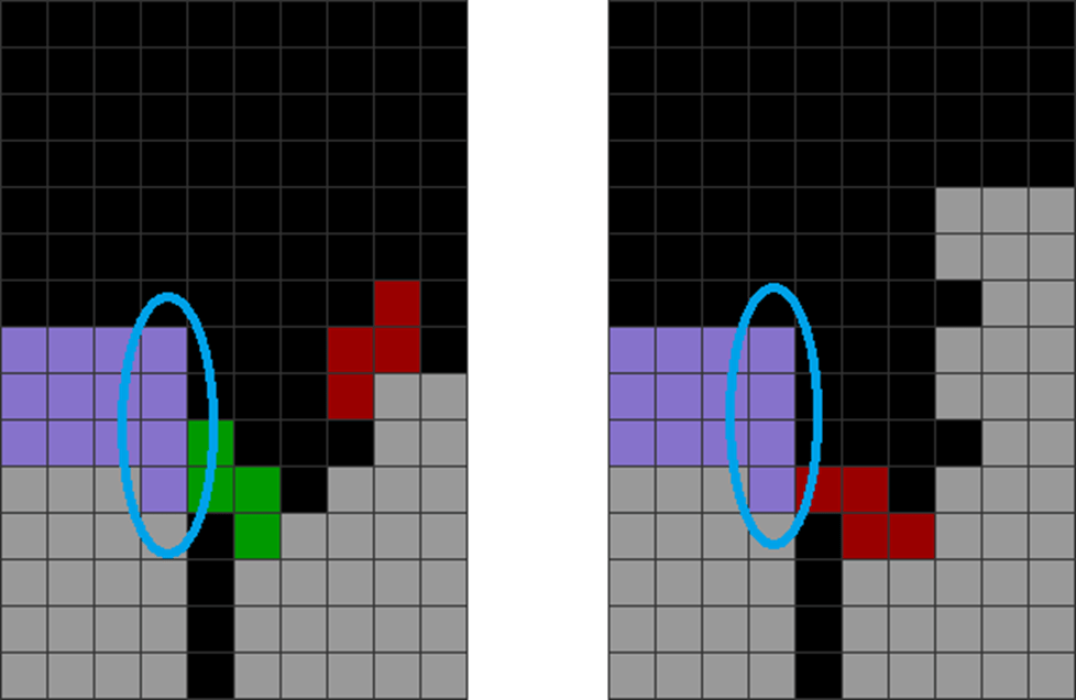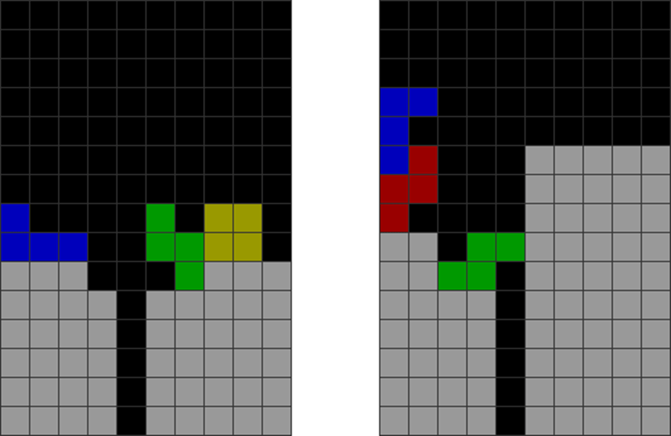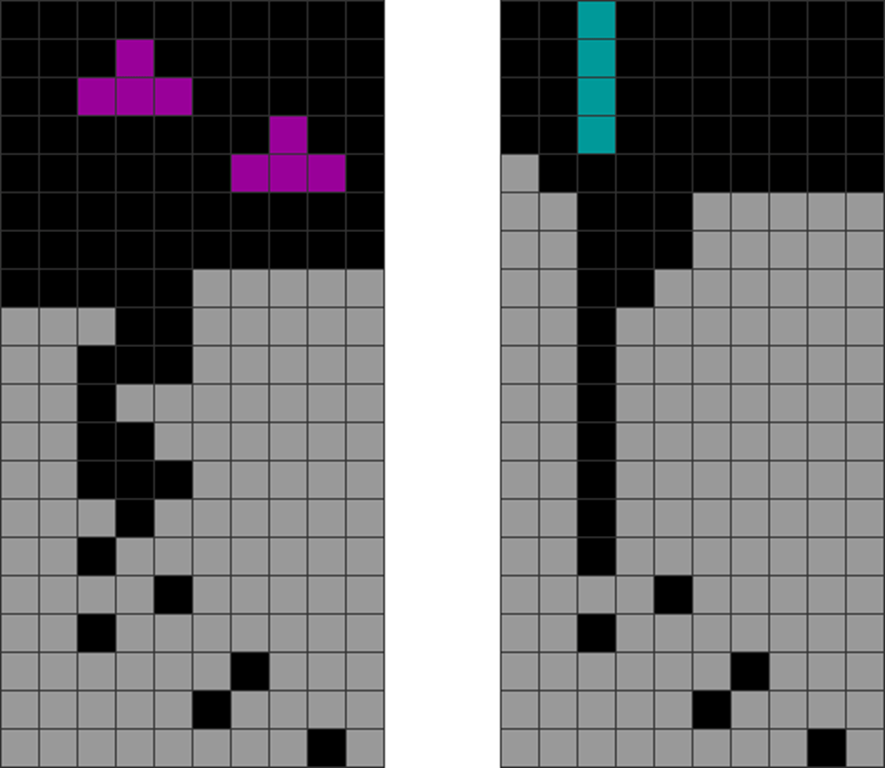 It helps to understand each piece’s properties to combine them for optimal stack stability while making T-spin overhangs. The two situations below with the S and Z pieces are sometimes not optimal. Why?