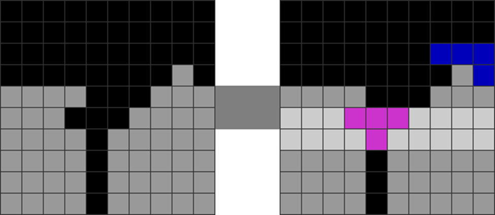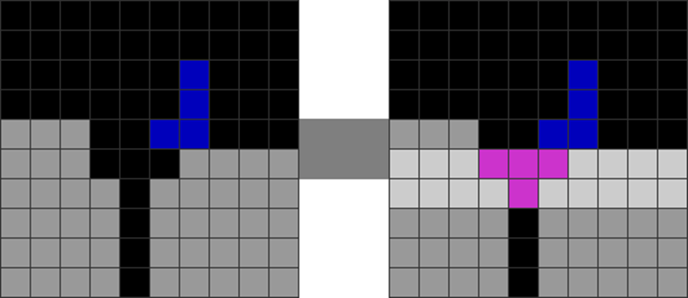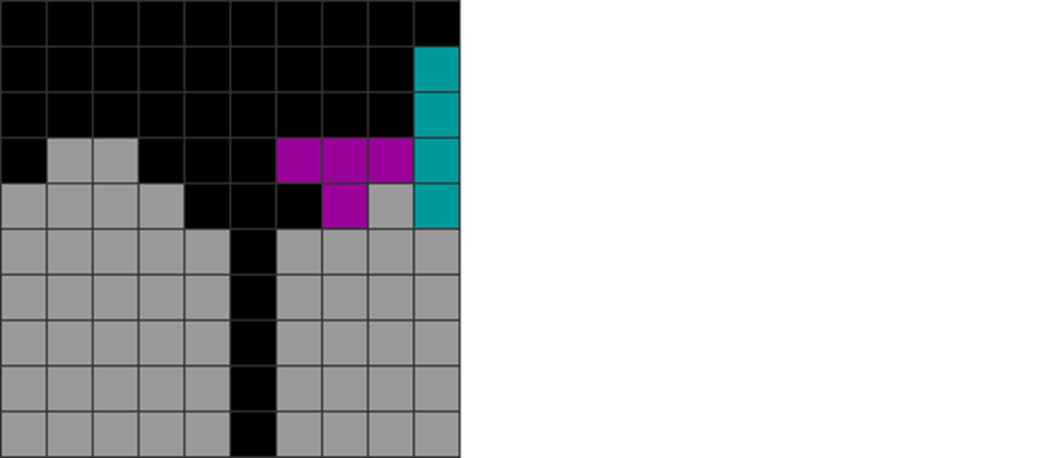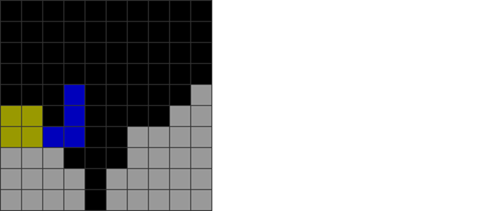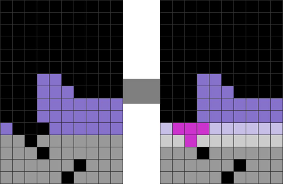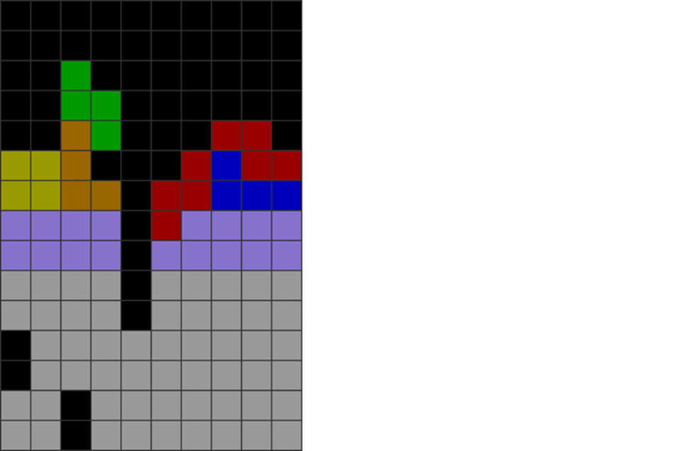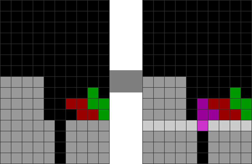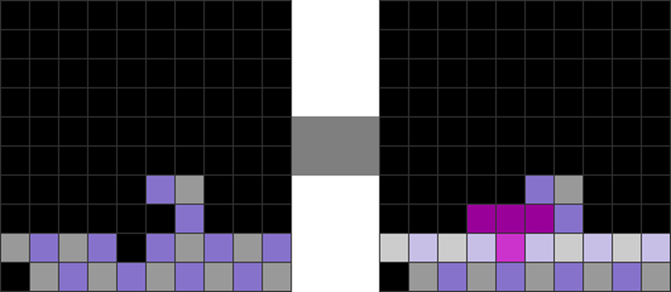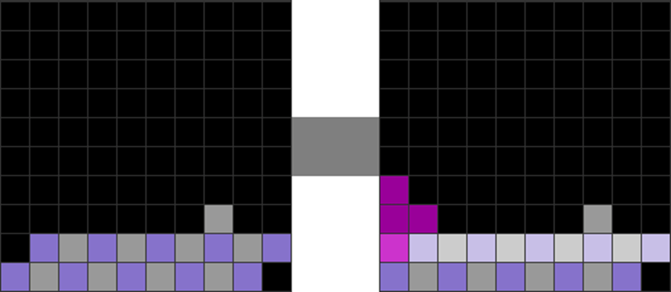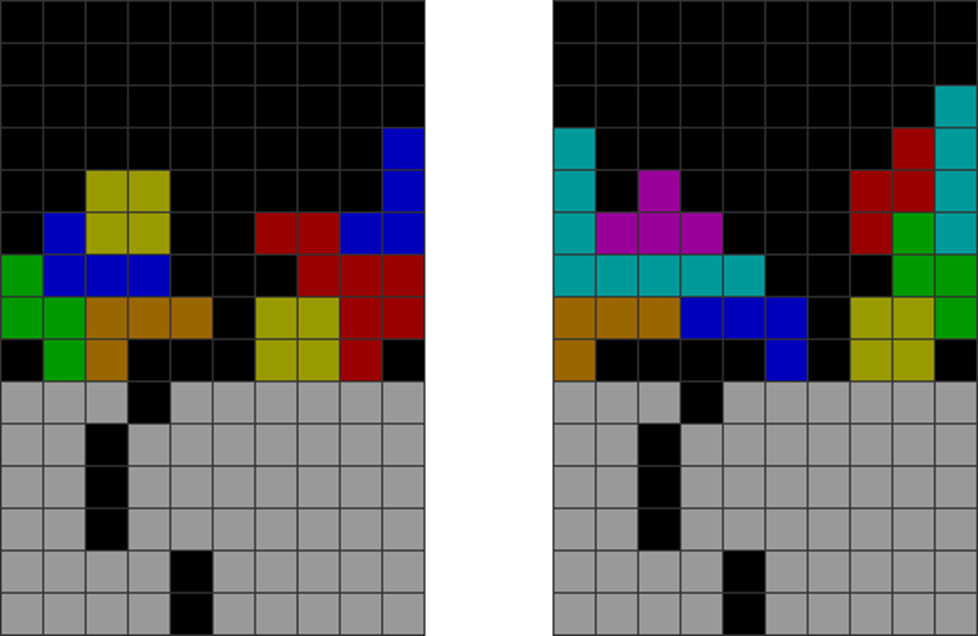 I sometimes get off very fancy T-spins in the game, like the ones below. The gray part has been pre-stacked.