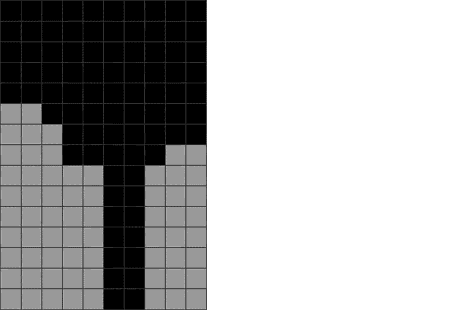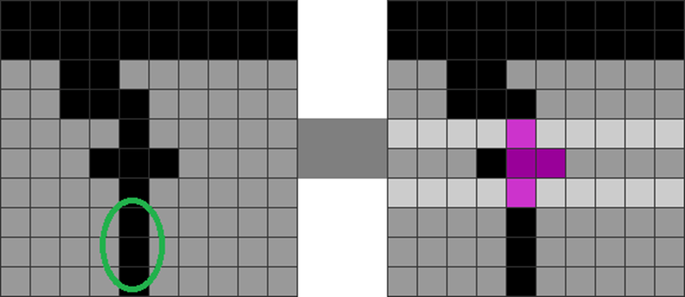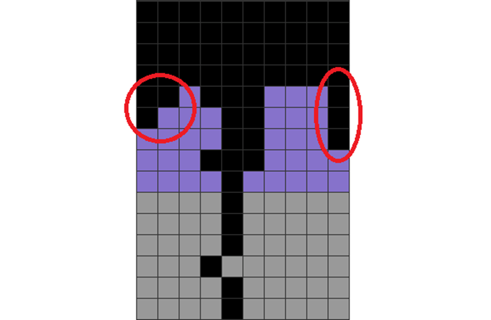 This creates an area where the local parity is balanced and non-jagged. This, thus, doesn’t need a T to be wasted in the stack.