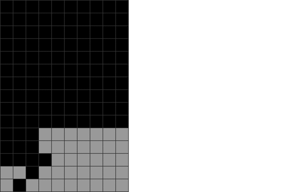 This method is very safe. If you manage the height differences in the overhang between both sides of a stack, you can quickly get a string of T-spin doubles. This can be from mid-game ST stacking, LST stacking, Fractals, C-spins, or freestyle stacking (to be covered in Chapter 14).